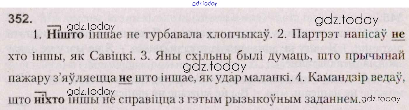 На страницах сайта gdz.today вы найдете учебный и вспомогательный материал, направленный на улучшения знаний школьной программы. ГДЗ - онлайн мир знаний Практыкаванні 352 Учебнику по Белорусскому языку для 7 класса Валочка, Язерская Национальный институт образования 2020