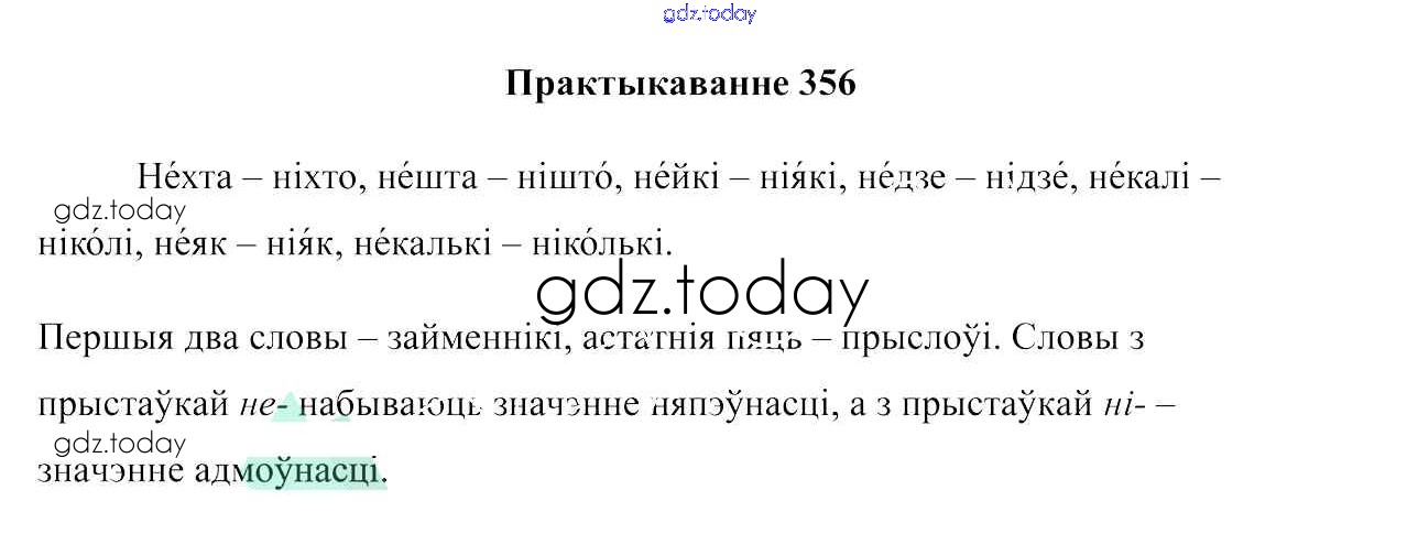 На страницах сайта gdz.today вы найдете учебный и вспомогательный материал, направленный на улучшения знаний школьной программы. ГДЗ - онлайн мир знаний Практыкаванні 356 Учебнику по Белорусскому языку для 7 класса Валочка, Язерская Национальный институт образования 2020