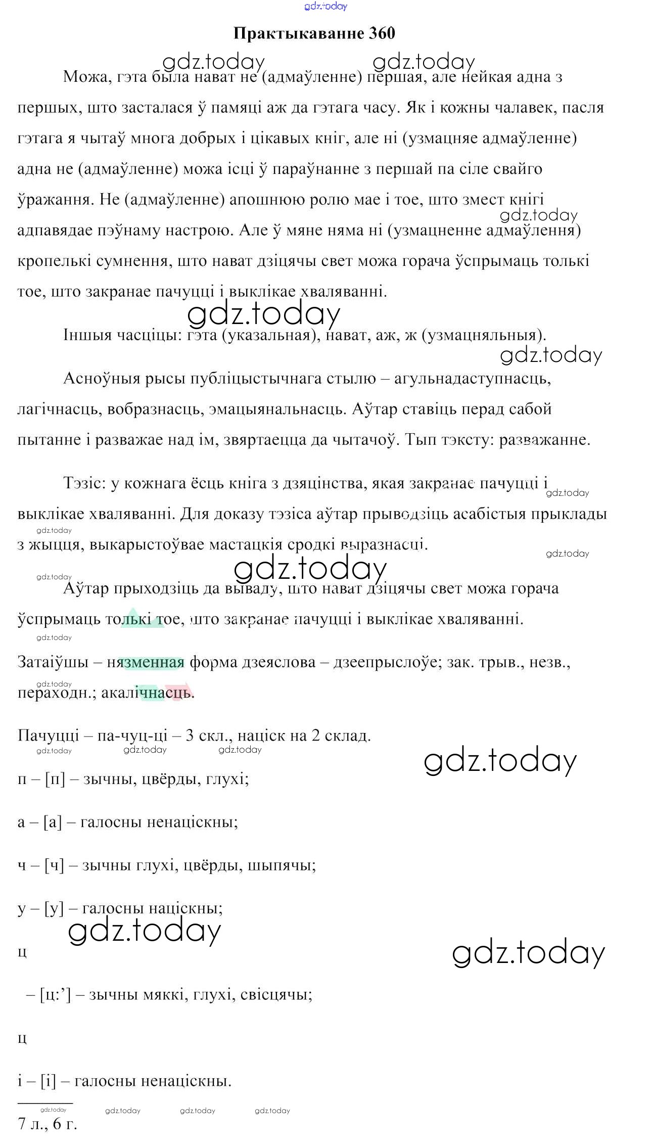 На страницах сайта gdz.today вы найдете учебный и вспомогательный материал, направленный на улучшения знаний школьной программы. ГДЗ - онлайн мир знаний Практыкаванні 360 Учебнику по Белорусскому языку для 7 класса Валочка, Язерская Национальный институт образования 2020