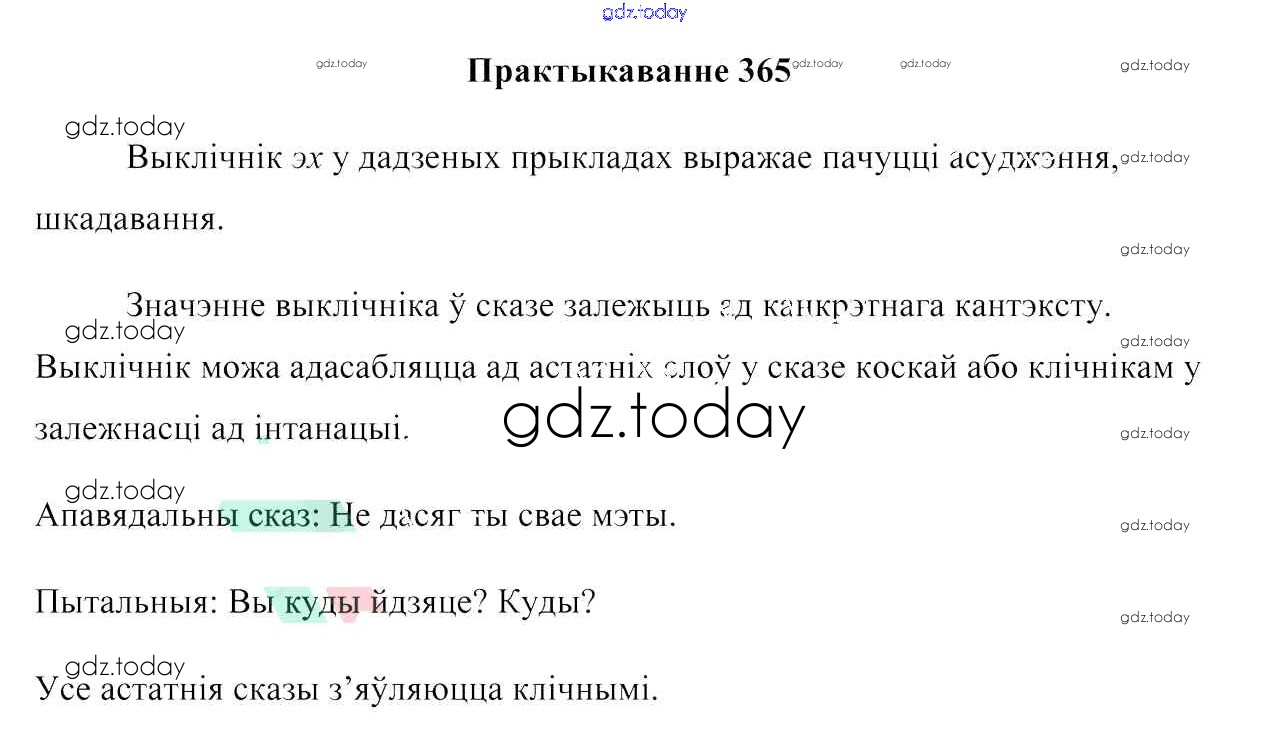 На страницах сайта gdz.today вы найдете учебный и вспомогательный материал, направленный на улучшения знаний школьной программы. ГДЗ - онлайн мир знаний Практыкаванні 365 Учебнику по Белорусскому языку для 7 класса Валочка, Язерская Национальный институт образования 2020