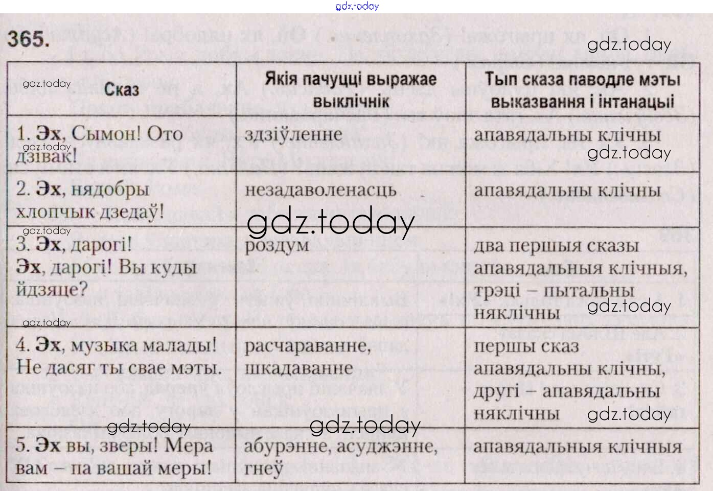 Ответы к Практыкаванні 365 Учебнику по Белорусскому языку для 7 класса Валочка, Язерская Национальный институт образования 2020