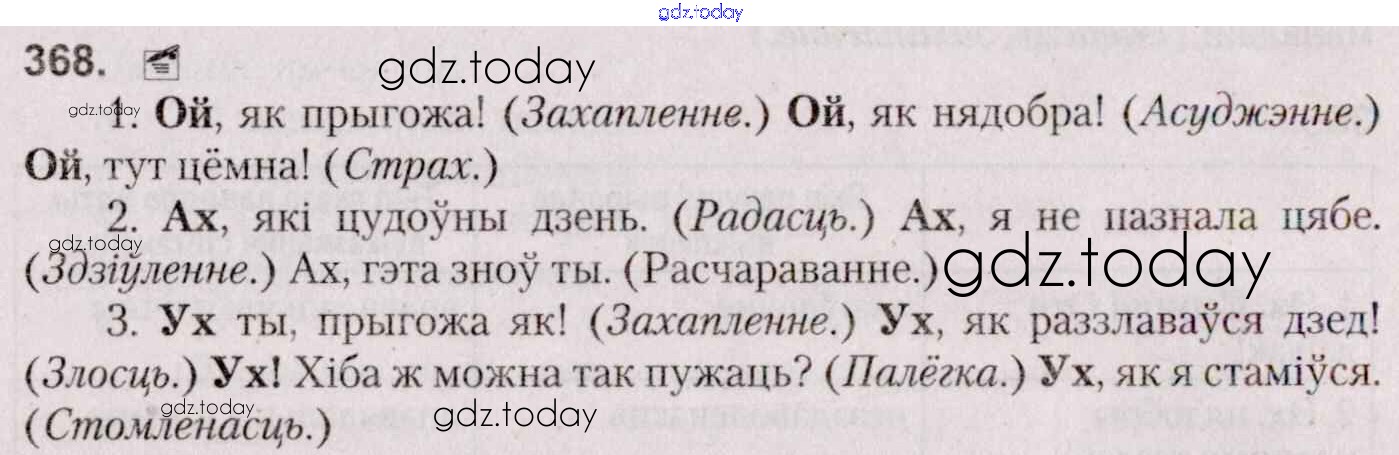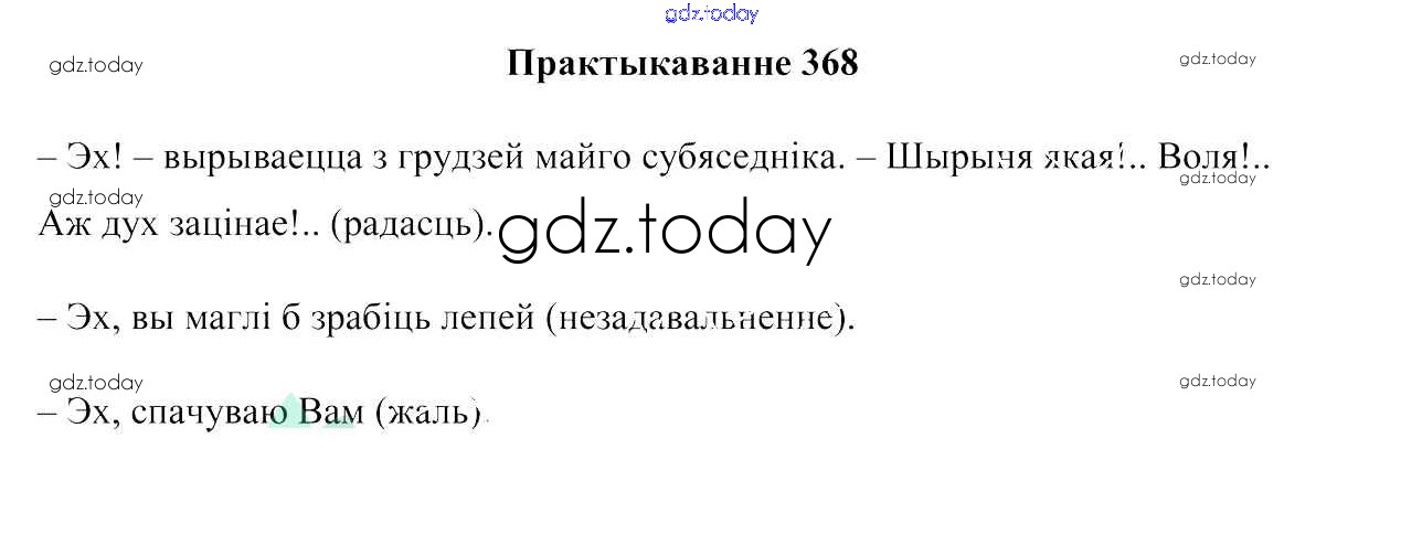 На страницах сайта gdz.today вы найдете учебный и вспомогательный материал, направленный на улучшения знаний школьной программы. ГДЗ - онлайн мир знаний Практыкаванні 368 Учебнику по Белорусскому языку для 7 класса Валочка, Язерская Национальный институт образования 2020