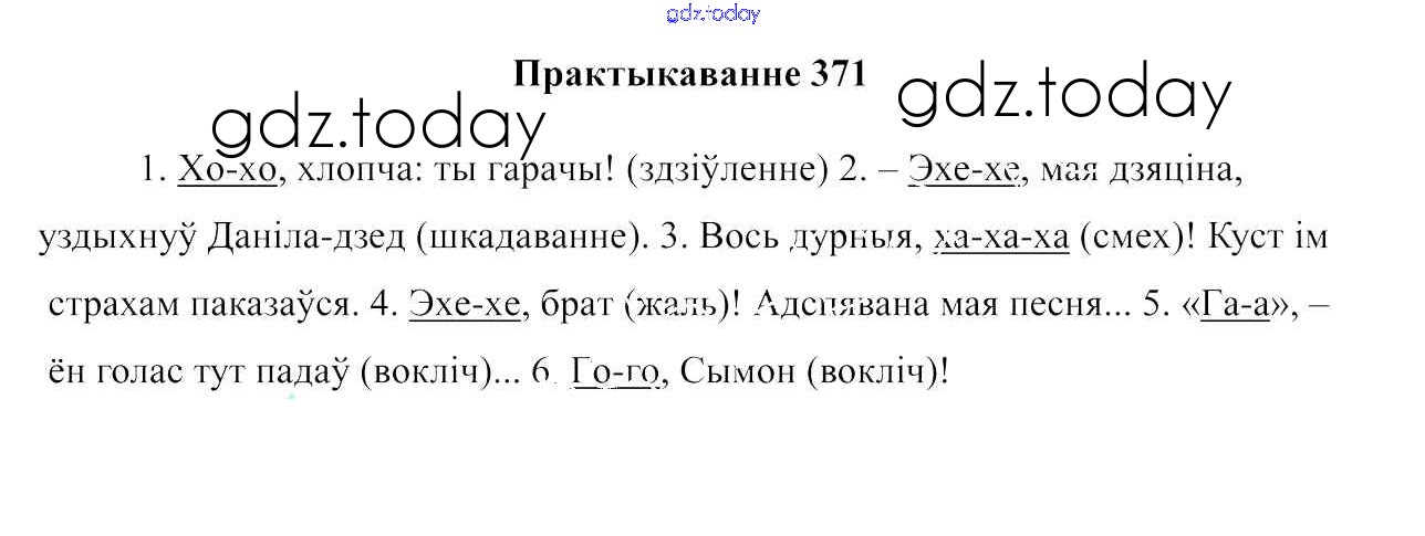 На страницах сайта gdz.today вы найдете учебный и вспомогательный материал, направленный на улучшения знаний школьной программы. ГДЗ - онлайн мир знаний Практыкаванні 371 Учебнику по Белорусскому языку для 7 класса Валочка, Язерская Национальный институт образования 2020