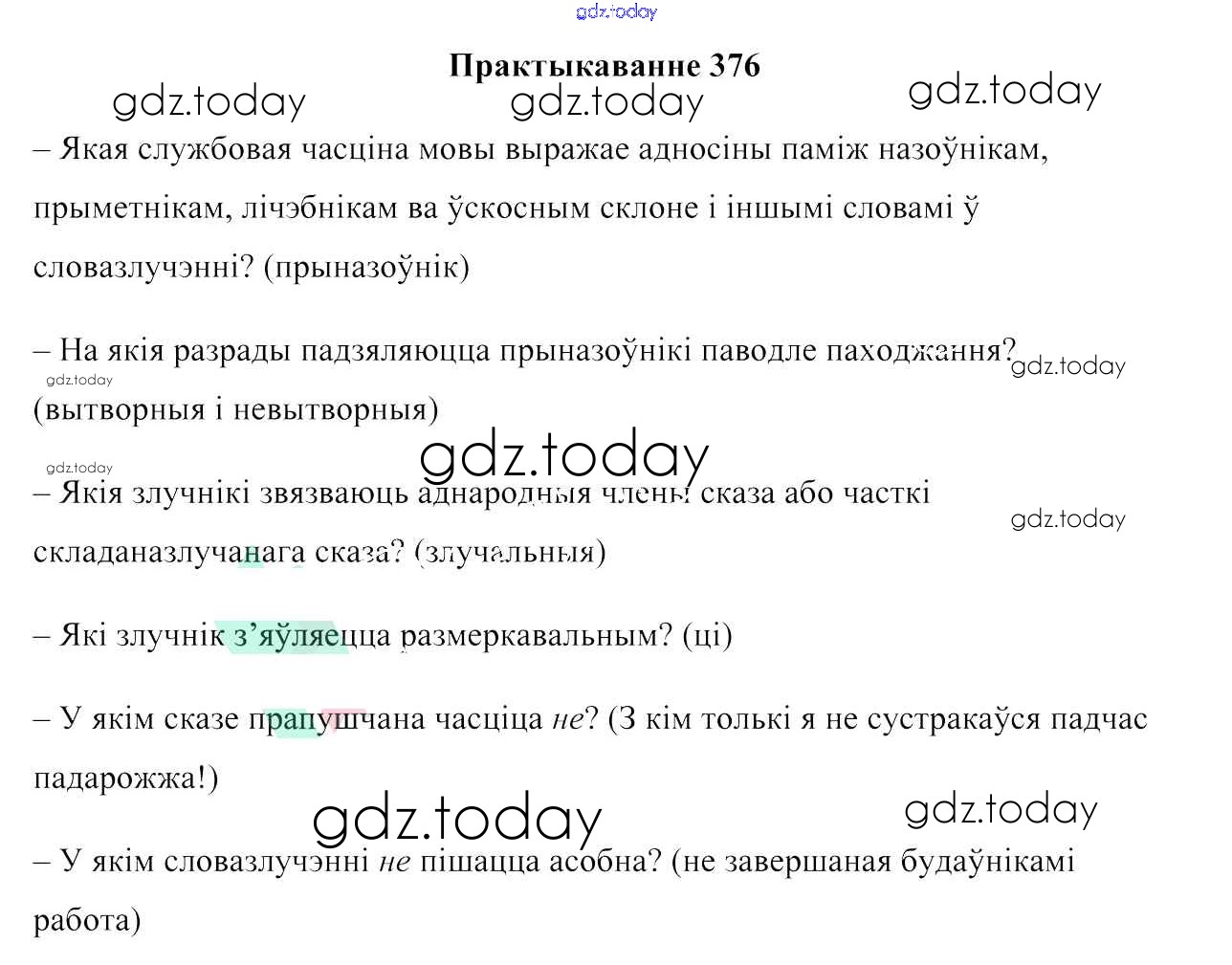 На страницах сайта gdz.today вы найдете учебный и вспомогательный материал, направленный на улучшения знаний школьной программы. ГДЗ - онлайн мир знаний Практыкаванні 376 Учебнику по Белорусскому языку для 7 класса Валочка, Язерская Национальный институт образования 2020