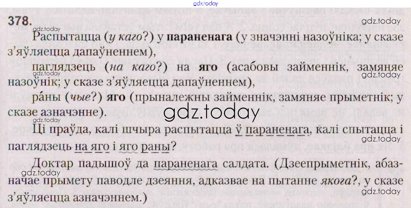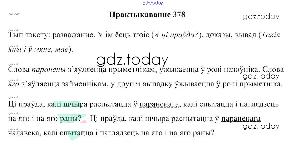 На страницах сайта gdz.today вы найдете учебный и вспомогательный материал, направленный на улучшения знаний школьной программы. ГДЗ - онлайн мир знаний Практыкаванні 378 Учебнику по Белорусскому языку для 7 класса Валочка, Язерская Национальный институт образования 2020