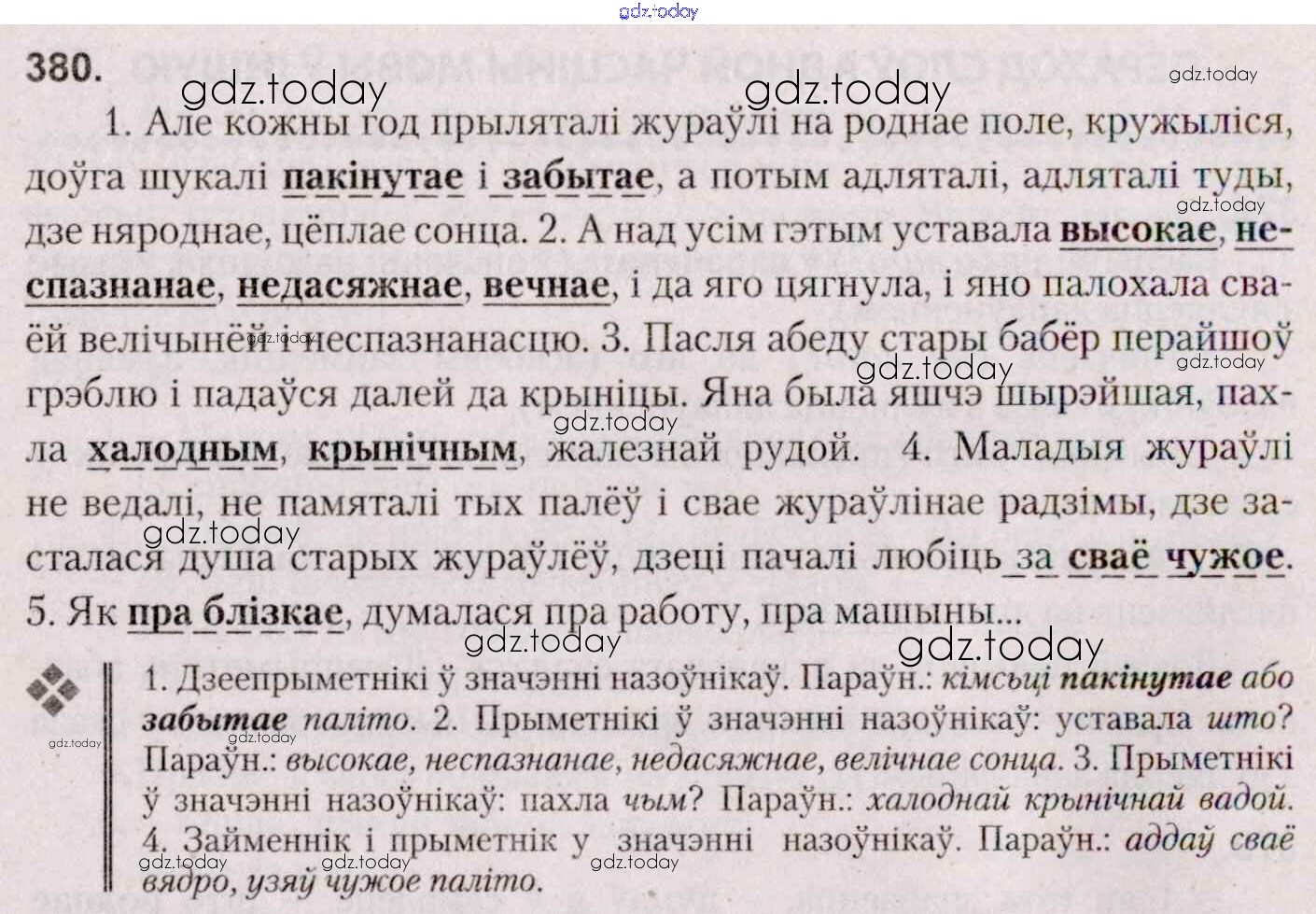 На страницах сайта gdz.today вы найдете учебный и вспомогательный материал, направленный на улучшения знаний школьной программы. ГДЗ - онлайн мир знаний Практыкаванні 380 Учебнику по Белорусскому языку для 7 класса Валочка, Язерская Национальный институт образования 2020