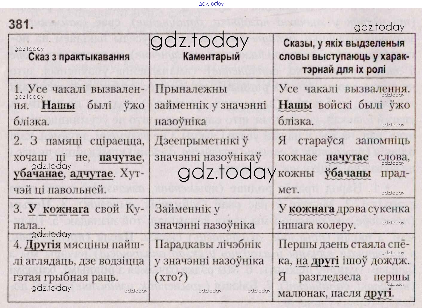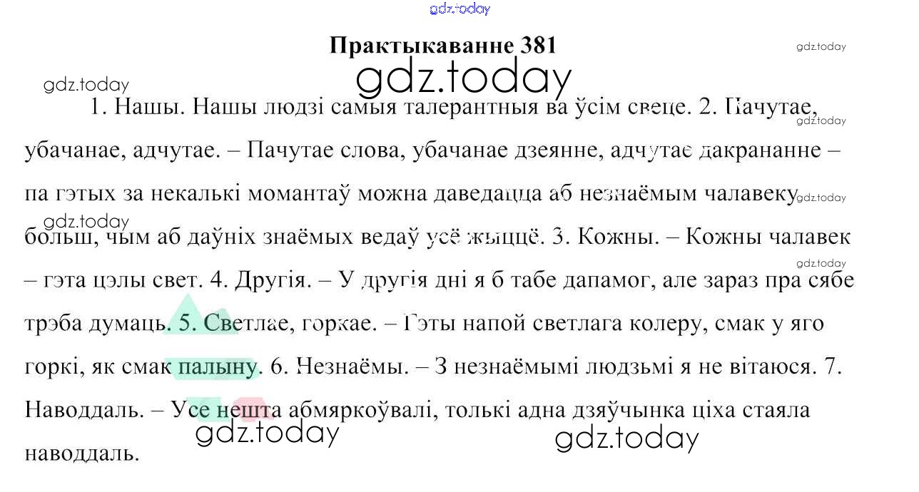 На страницах сайта gdz.today вы найдете учебный и вспомогательный материал, направленный на улучшения знаний школьной программы. ГДЗ - онлайн мир знаний Практыкаванні 381 Учебнику по Белорусскому языку для 7 класса Валочка, Язерская Национальный институт образования 2020
