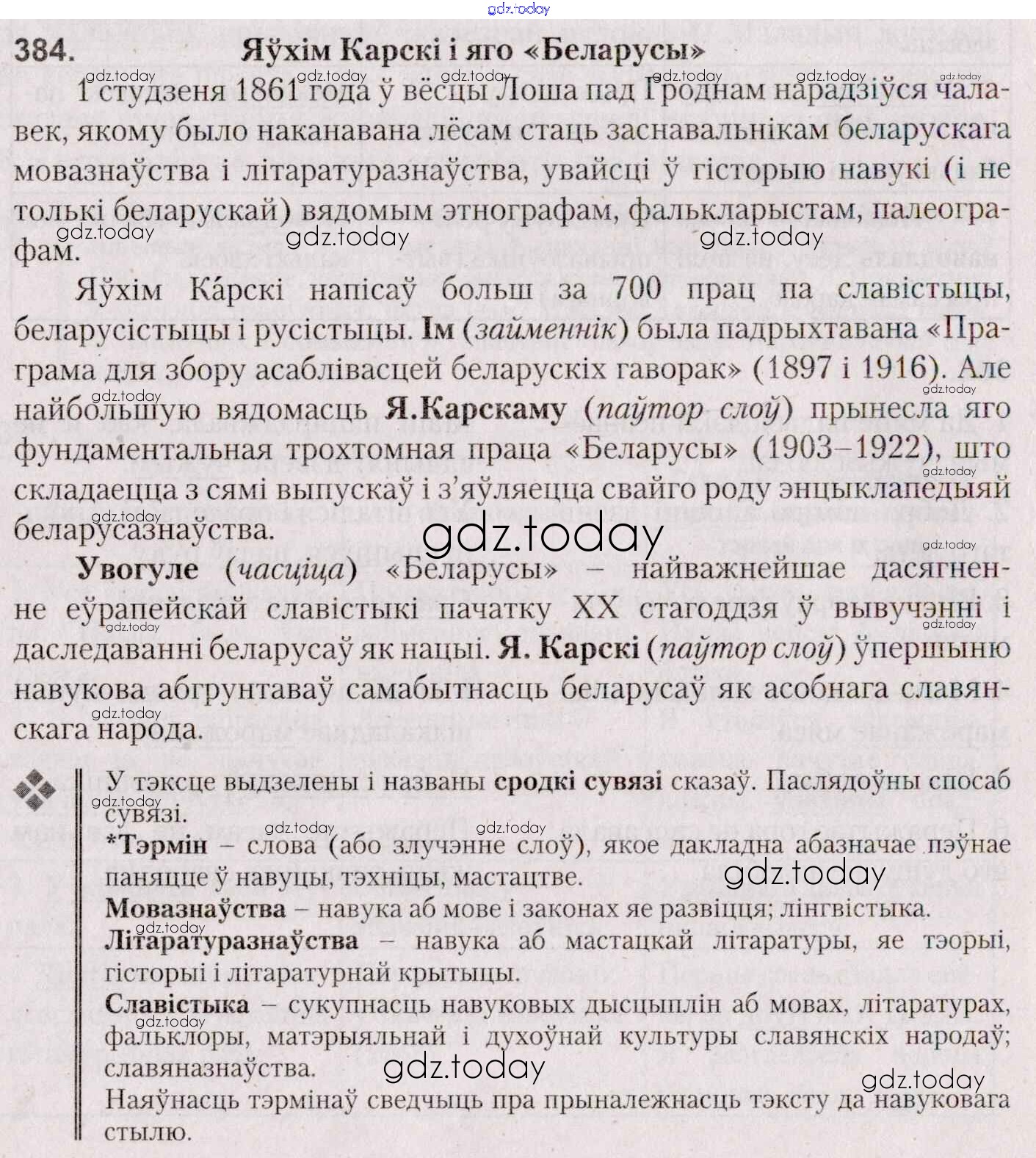 На страницах сайта gdz.today вы найдете учебный и вспомогательный материал, направленный на улучшения знаний школьной программы. ГДЗ - онлайн мир знаний Практыкаванні 384 Учебнику по Белорусскому языку для 7 класса Валочка, Язерская Национальный институт образования 2020