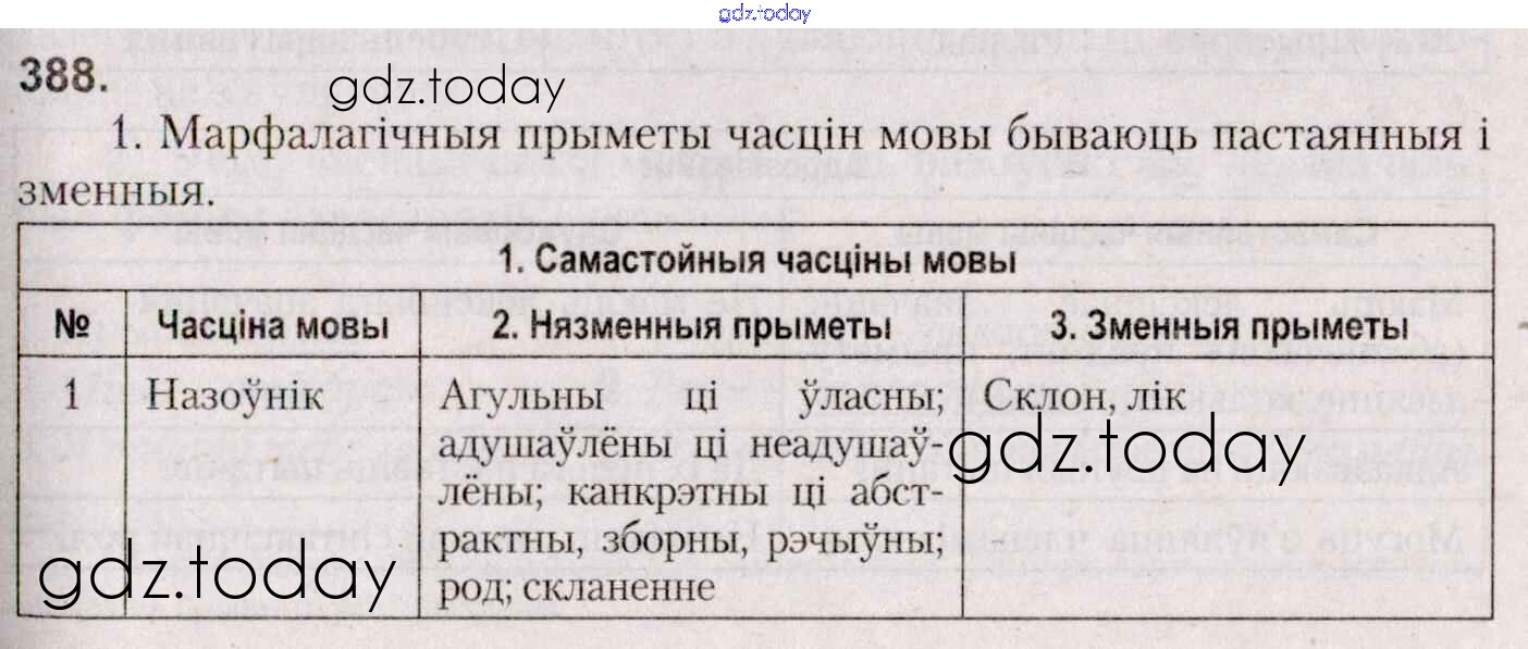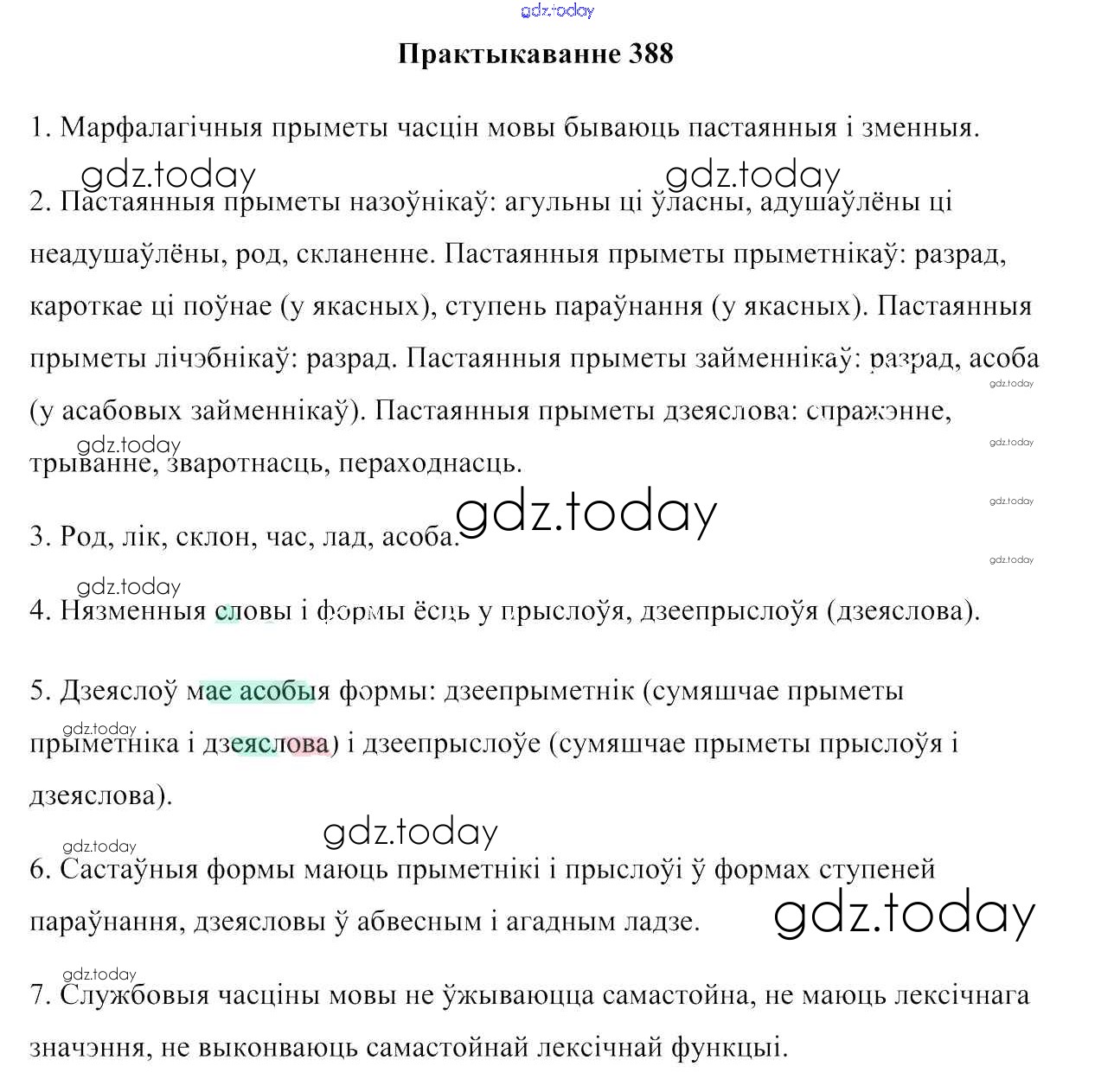 На страницах сайта gdz.today вы найдете учебный и вспомогательный материал, направленный на улучшения знаний школьной программы. ГДЗ - онлайн мир знаний Практыкаванні 388 Учебнику по Белорусскому языку для 7 класса Валочка, Язерская Национальный институт образования 2020