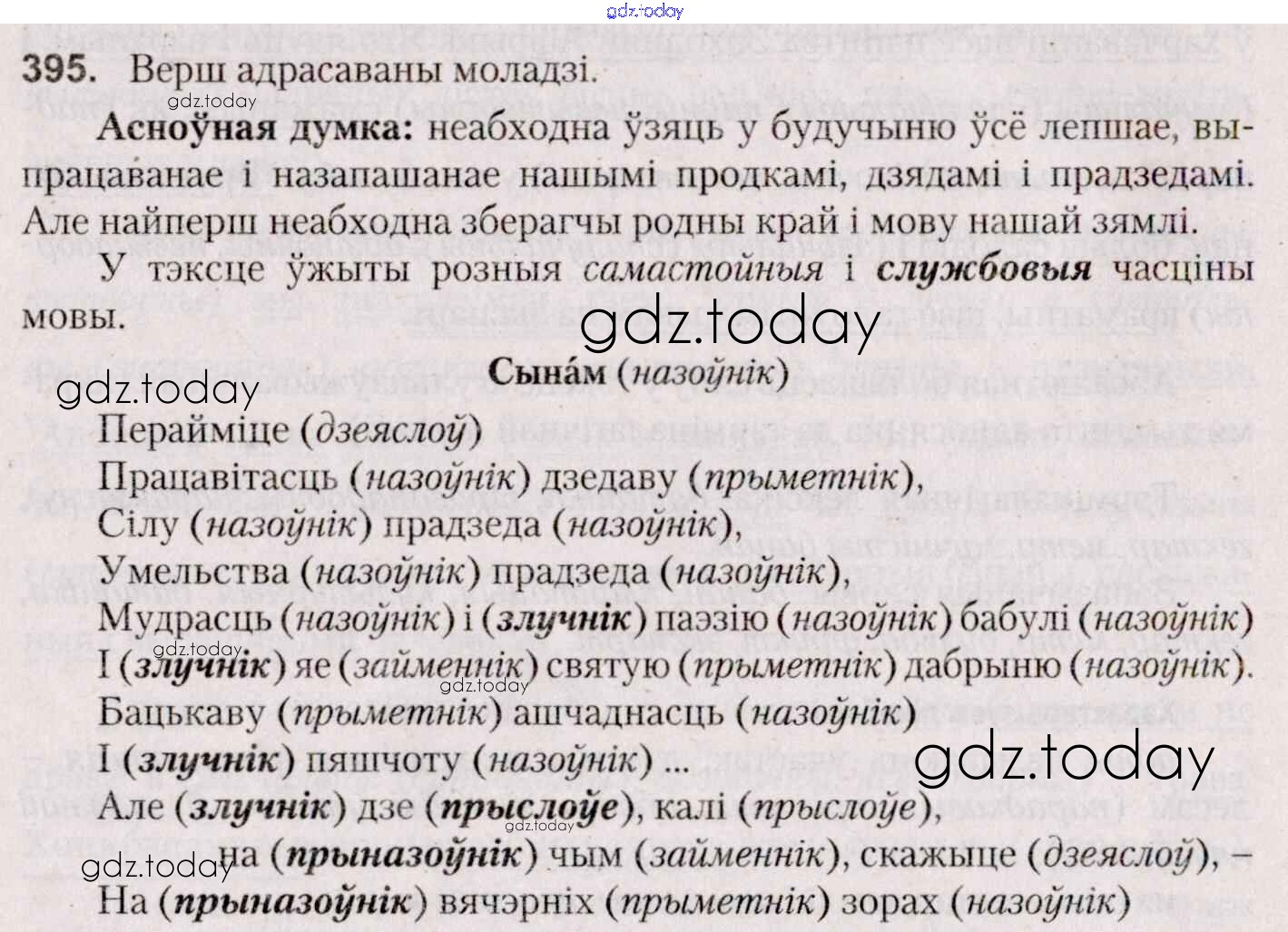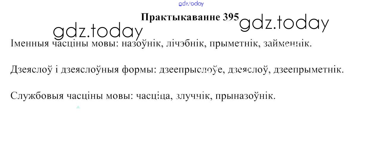 На страницах сайта gdz.today вы найдете учебный и вспомогательный материал, направленный на улучшения знаний школьной программы. ГДЗ - онлайн мир знаний Практыкаванні 395 Учебнику по Белорусскому языку для 7 класса Валочка, Язерская Национальный институт образования 2020