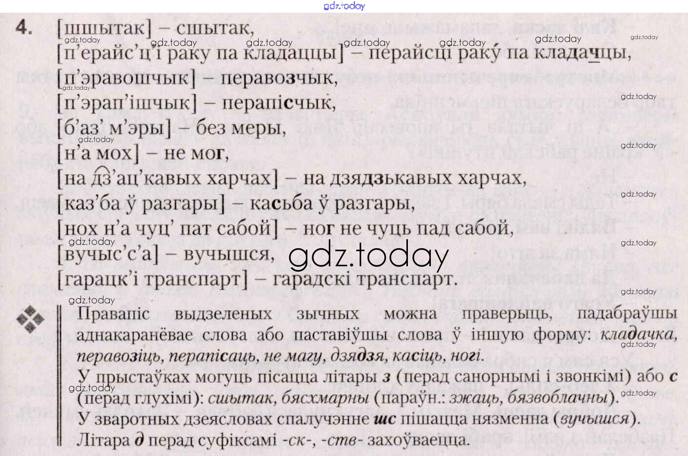 На страницах сайта gdz.today вы найдете учебный и вспомогательный материал, направленный на улучшения знаний школьной программы. ГДЗ - онлайн мир знаний Практыкаванні 4 Учебнику по Белорусскому языку для 7 класса Валочка, Язерская Национальный институт образования 2020