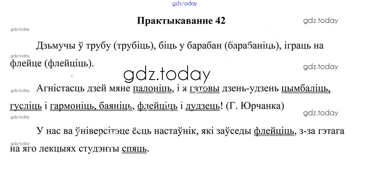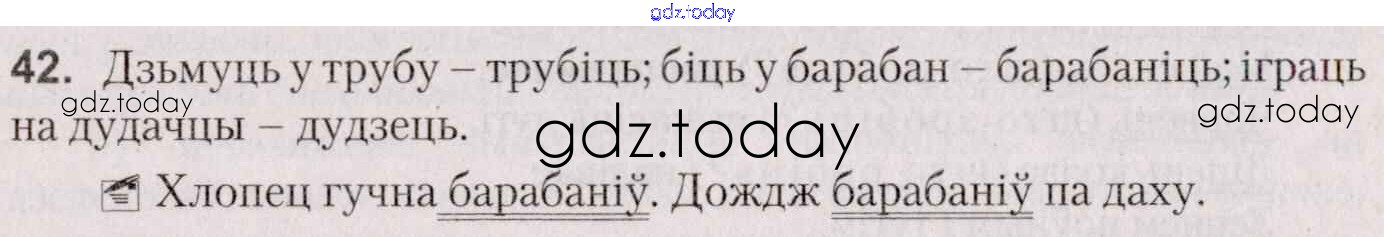 На страницах сайта gdz.today вы найдете учебный и вспомогательный материал, направленный на улучшения знаний школьной программы. ГДЗ - онлайн мир знаний Практыкаванні 42 Учебнику по Белорусскому языку для 7 класса Валочка, Язерская Национальный институт образования 2020
