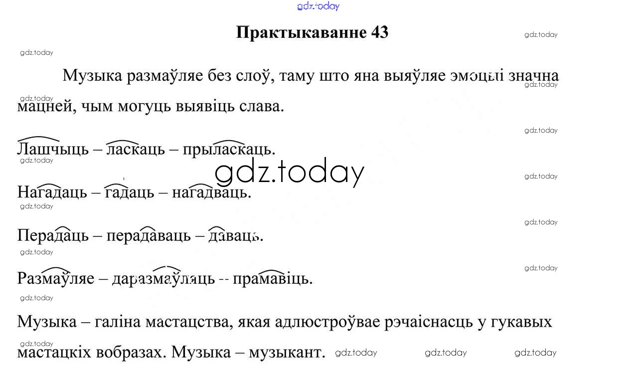 На страницах сайта gdz.today вы найдете учебный и вспомогательный материал, направленный на улучшения знаний школьной программы. ГДЗ - онлайн мир знаний Практыкаванні 43 Учебнику по Белорусскому языку для 7 класса Валочка, Язерская Национальный институт образования 2020