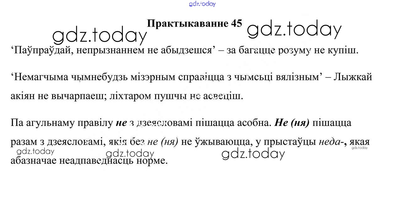 На страницах сайта gdz.today вы найдете учебный и вспомогательный материал, направленный на улучшения знаний школьной программы. ГДЗ - онлайн мир знаний Практыкаванні 45 Учебнику по Белорусскому языку для 7 класса Валочка, Язерская Национальный институт образования 2020