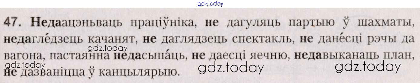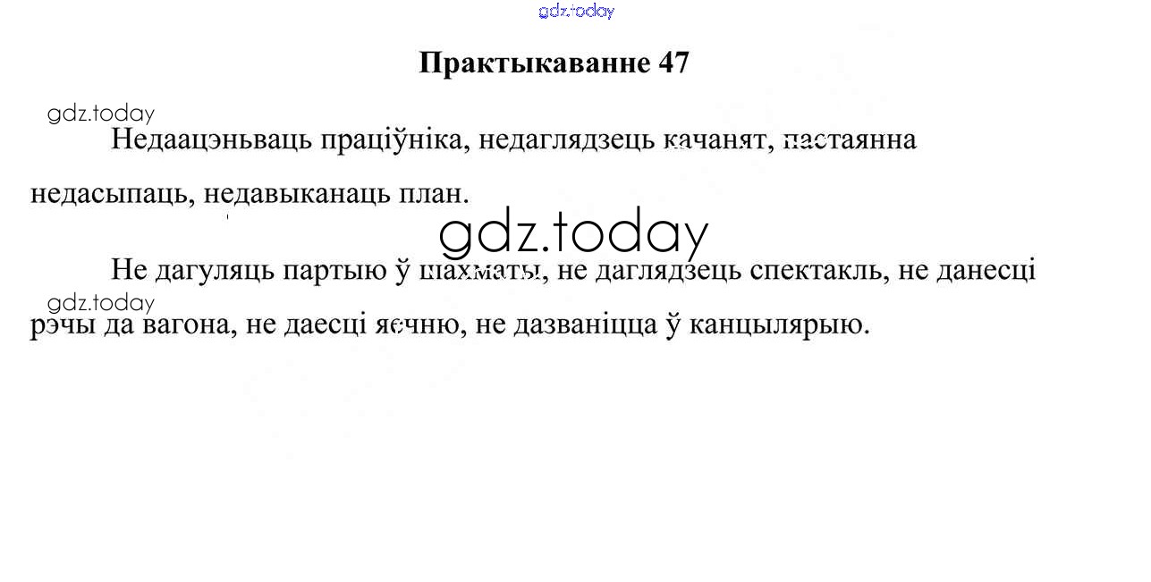 На страницах сайта gdz.today вы найдете учебный и вспомогательный материал, направленный на улучшения знаний школьной программы. ГДЗ - онлайн мир знаний Практыкаванні 47 Учебнику по Белорусскому языку для 7 класса Валочка, Язерская Национальный институт образования 2020