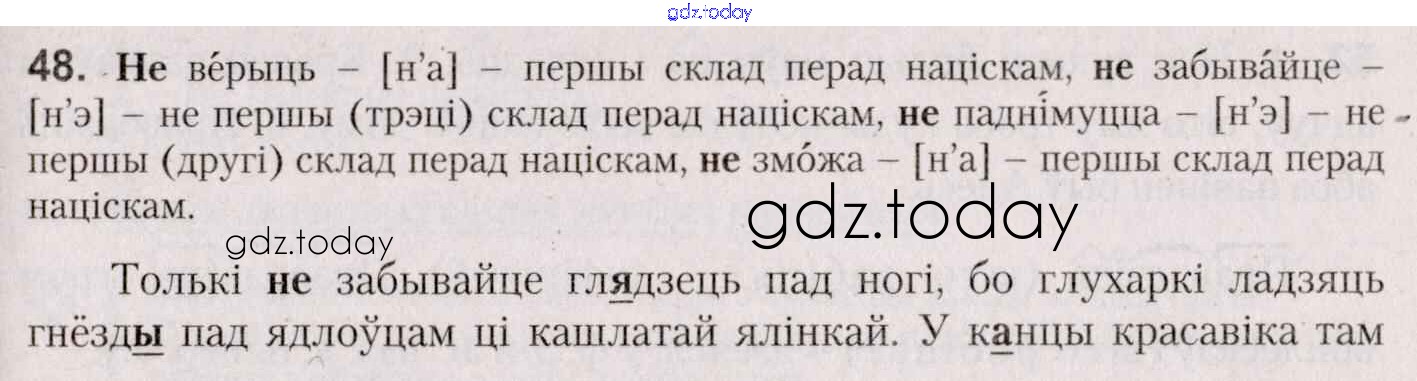 На страницах сайта gdz.today вы найдете учебный и вспомогательный материал, направленный на улучшения знаний школьной программы. ГДЗ - онлайн мир знаний Практыкаванні 48 Учебнику по Белорусскому языку для 7 класса Валочка, Язерская Национальный институт образования 2020