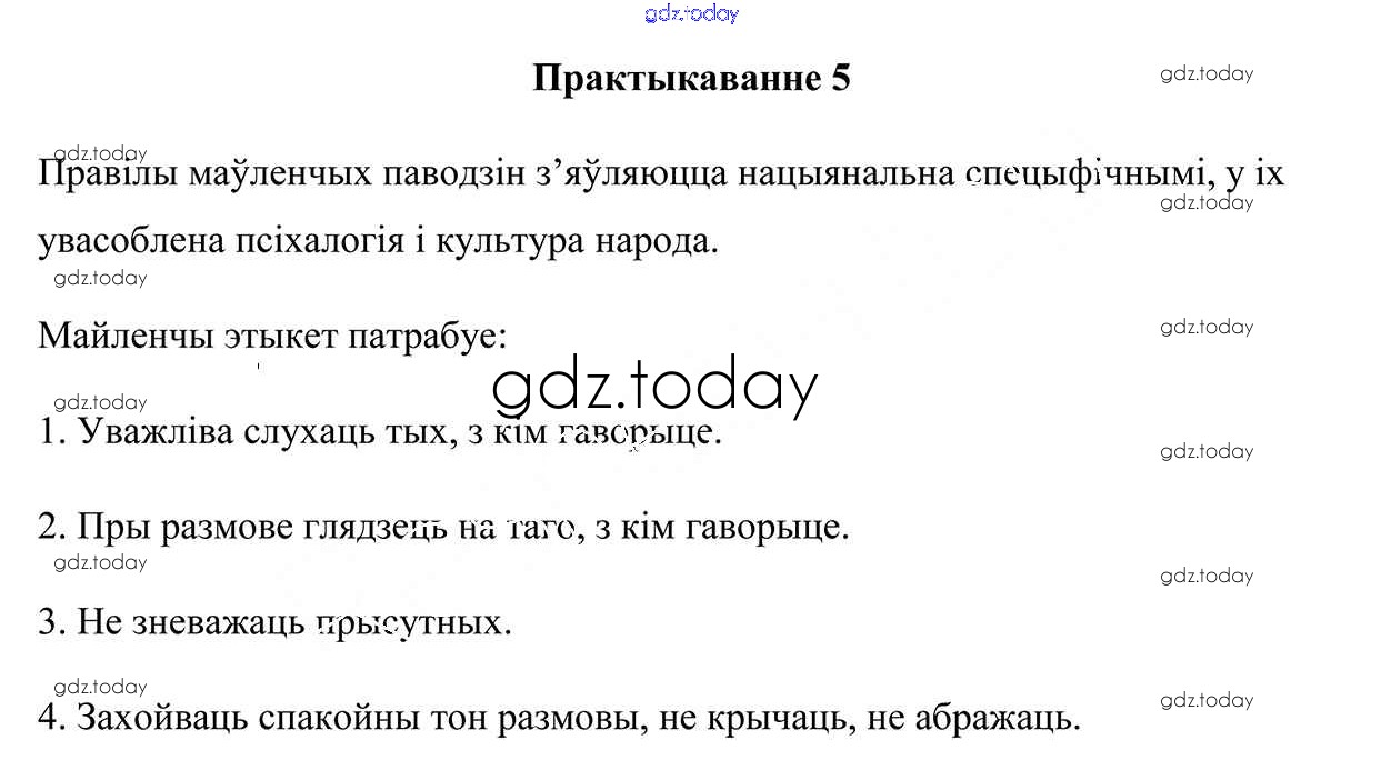 На страницах сайта gdz.today вы найдете учебный и вспомогательный материал, направленный на улучшения знаний школьной программы. ГДЗ - онлайн мир знаний Практыкаванні 5 Учебнику по Белорусскому языку для 7 класса Валочка, Язерская Национальный институт образования 2020