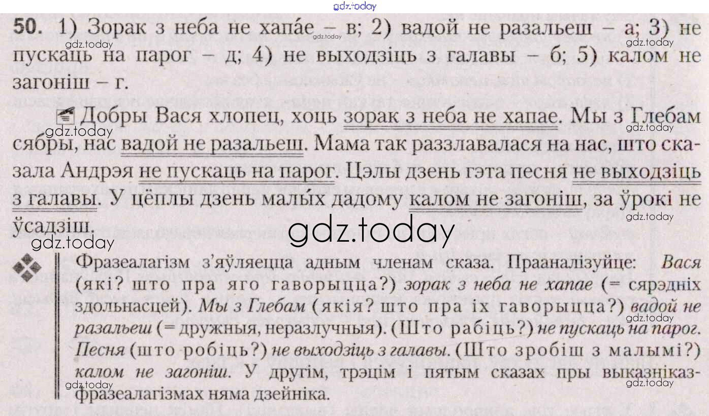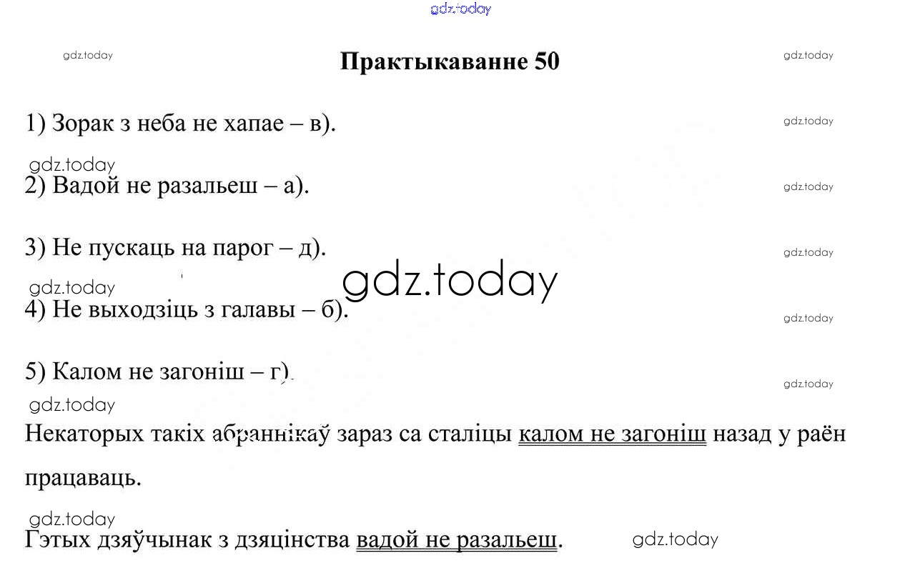 На страницах сайта gdz.today вы найдете учебный и вспомогательный материал, направленный на улучшения знаний школьной программы. ГДЗ - онлайн мир знаний Практыкаванні 50 Учебнику по Белорусскому языку для 7 класса Валочка, Язерская Национальный институт образования 2020