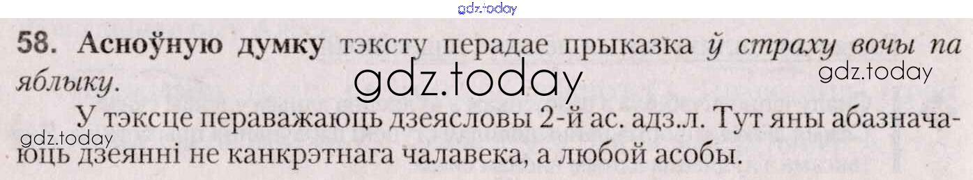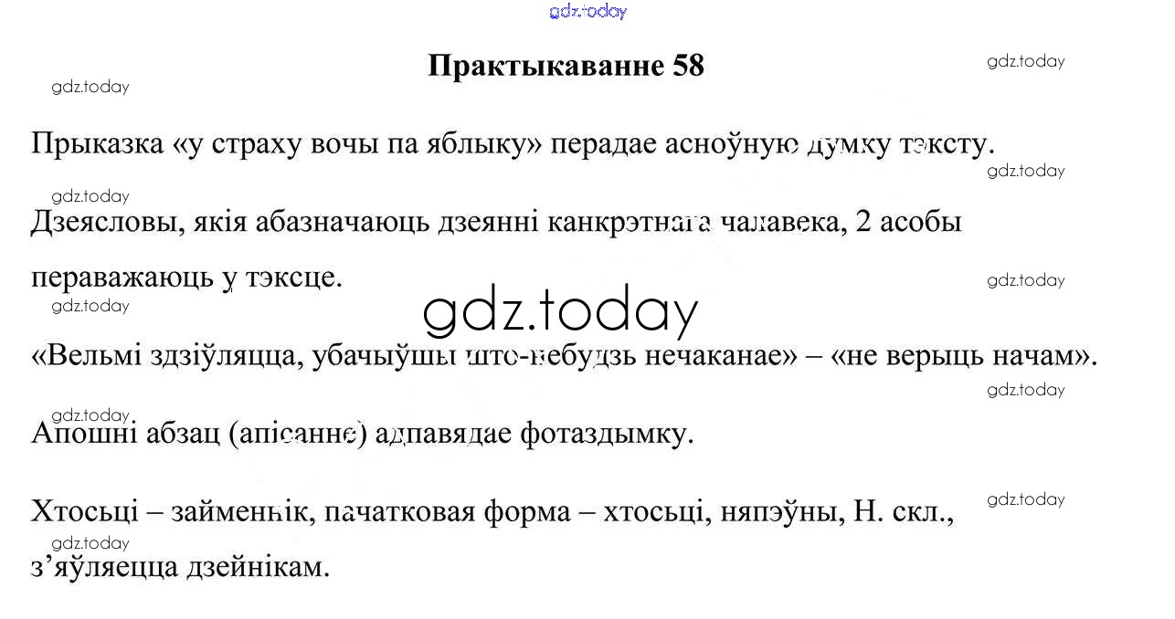 На страницах сайта gdz.today вы найдете учебный и вспомогательный материал, направленный на улучшения знаний школьной программы. ГДЗ - онлайн мир знаний Практыкаванні 58 Учебнику по Белорусскому языку для 7 класса Валочка, Язерская Национальный институт образования 2020