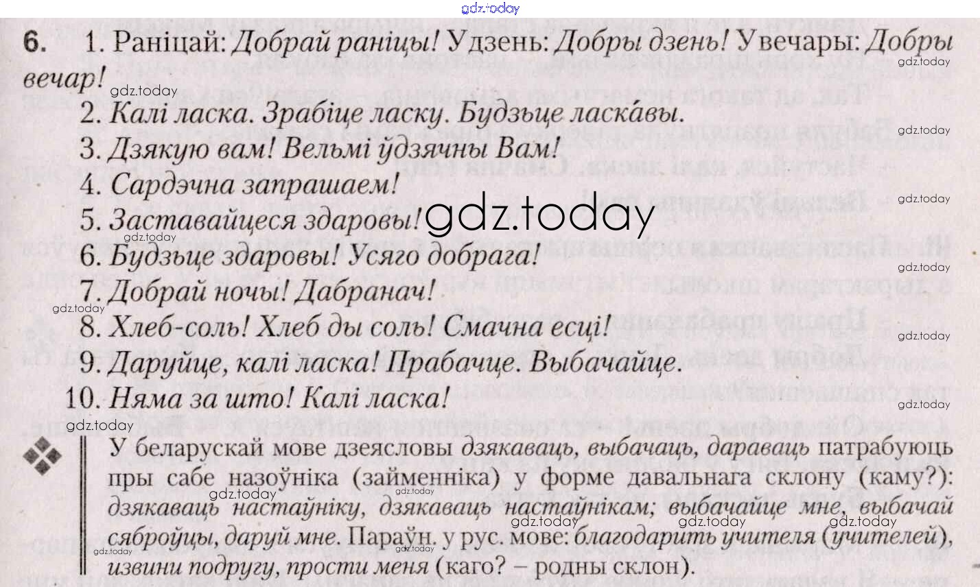 На страницах сайта gdz.today вы найдете учебный и вспомогательный материал, направленный на улучшения знаний школьной программы. ГДЗ - онлайн мир знаний Практыкаванні 6 Учебнику по Белорусскому языку для 7 класса Валочка, Язерская Национальный институт образования 2020