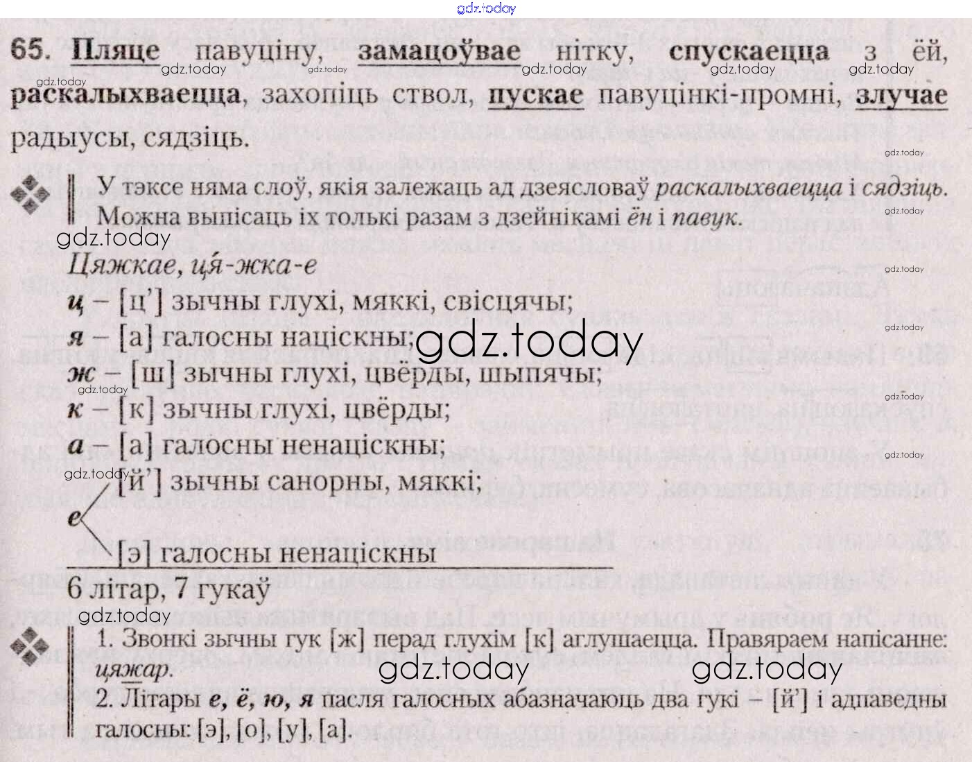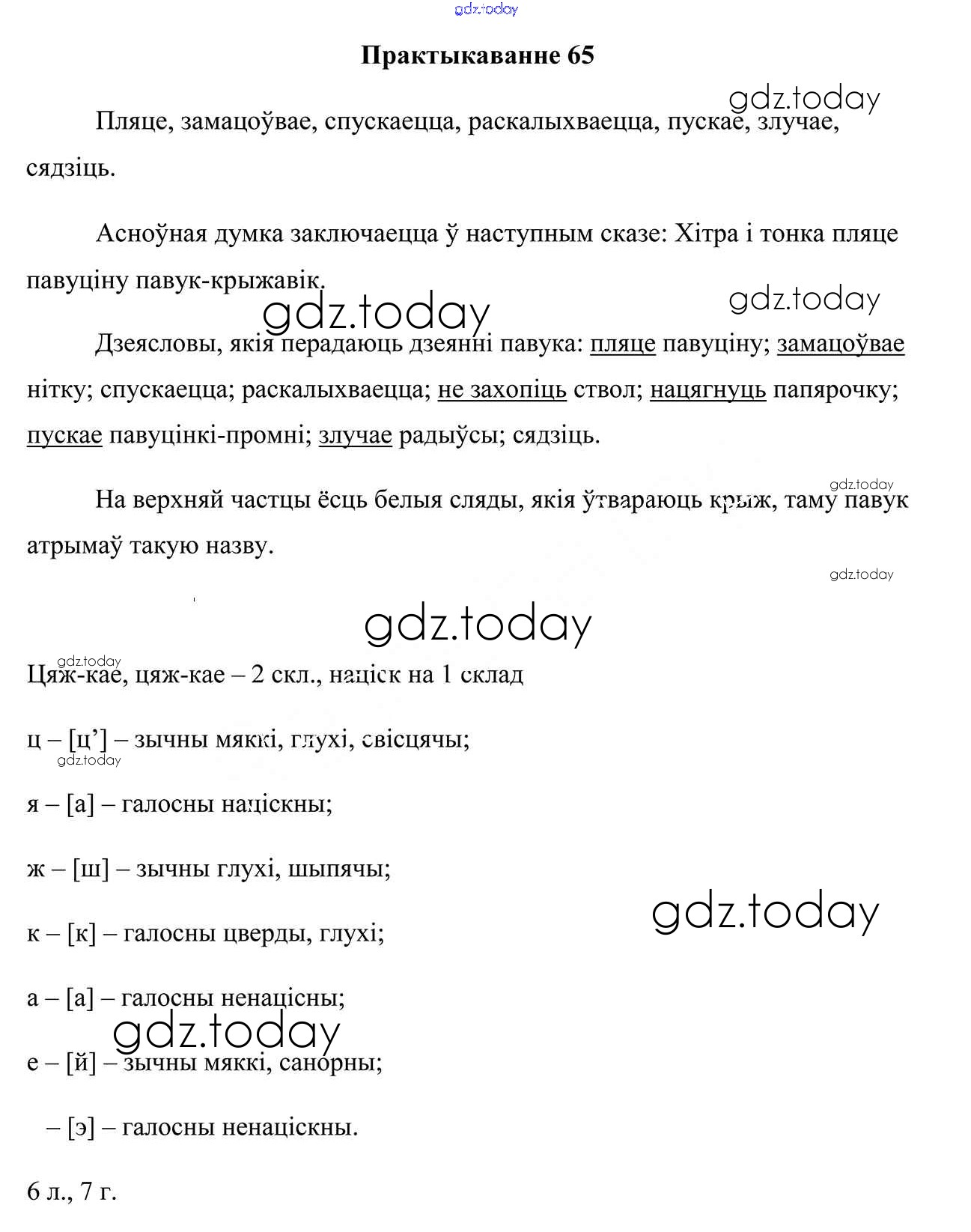 На страницах сайта gdz.today вы найдете учебный и вспомогательный материал, направленный на улучшения знаний школьной программы. ГДЗ - онлайн мир знаний Практыкаванні 65 Учебнику по Белорусскому языку для 7 класса Валочка, Язерская Национальный институт образования 2020
