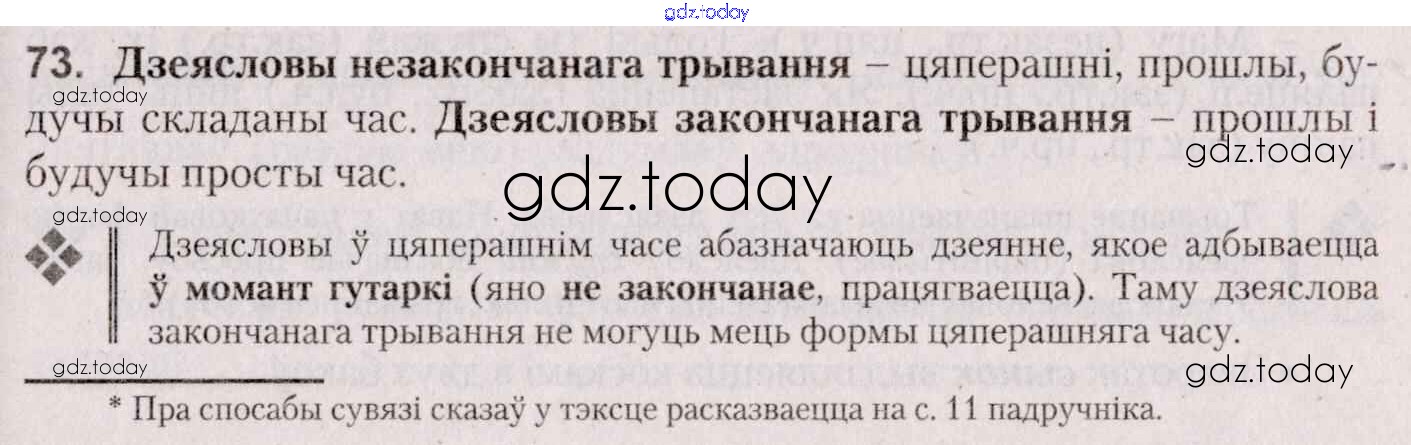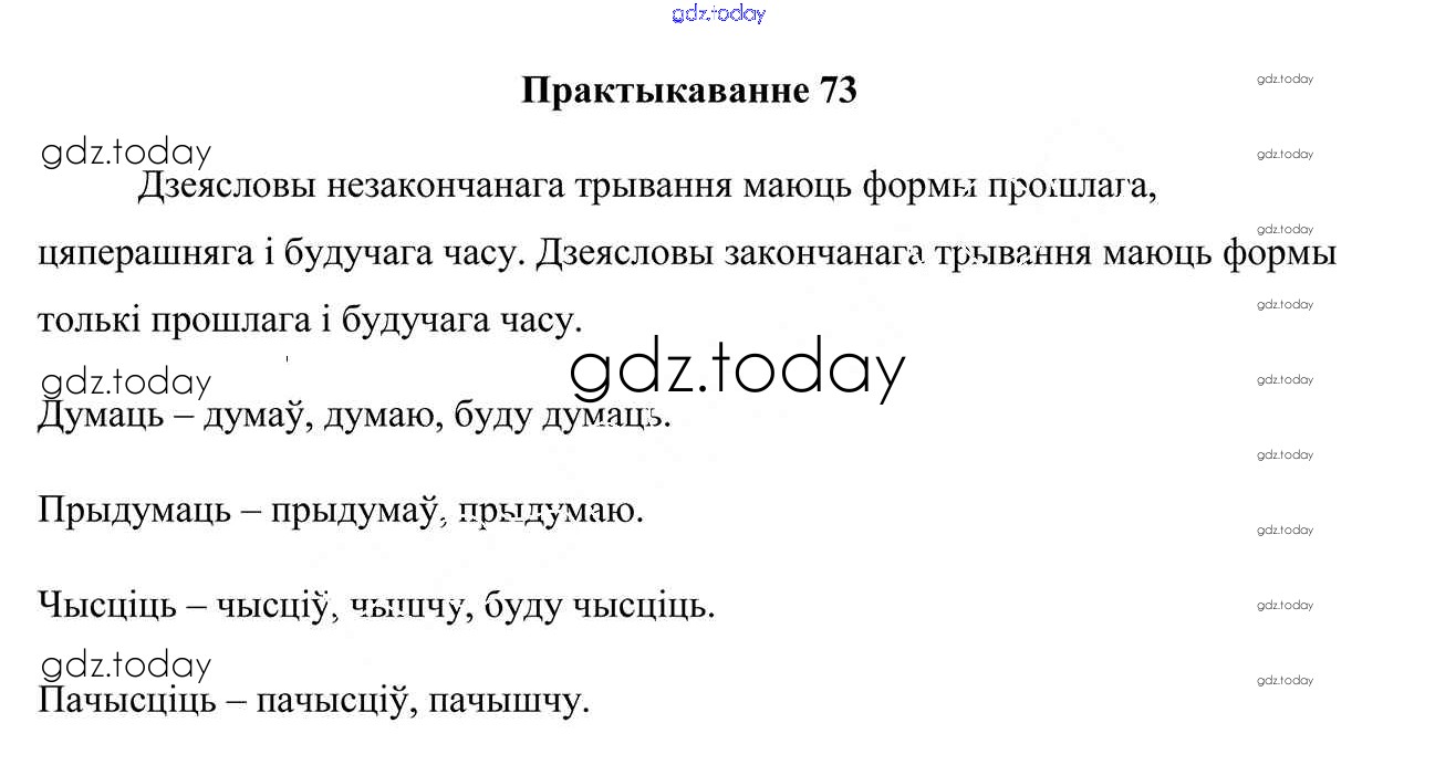 На страницах сайта gdz.today вы найдете учебный и вспомогательный материал, направленный на улучшения знаний школьной программы. ГДЗ - онлайн мир знаний Практыкаванні 73 Учебнику по Белорусскому языку для 7 класса Валочка, Язерская Национальный институт образования 2020