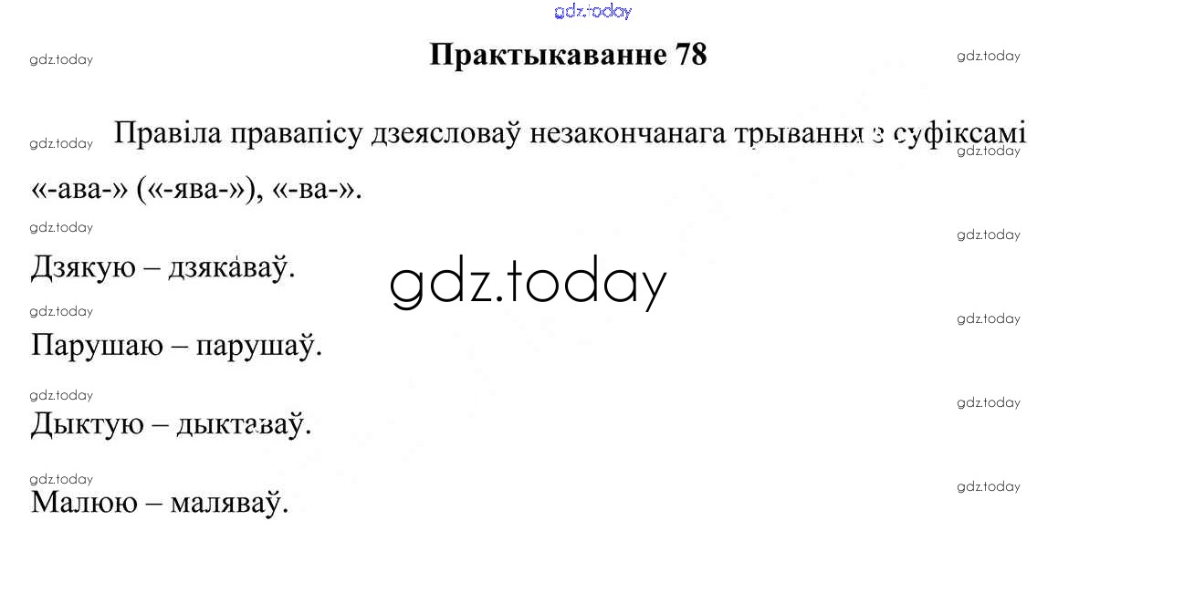 На страницах сайта gdz.today вы найдете учебный и вспомогательный материал, направленный на улучшения знаний школьной программы. ГДЗ - онлайн мир знаний Практыкаванні 78 Учебнику по Белорусскому языку для 7 класса Валочка, Язерская Национальный институт образования 2020