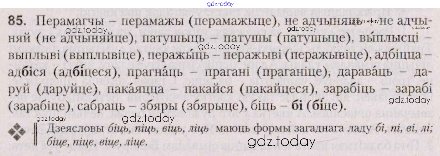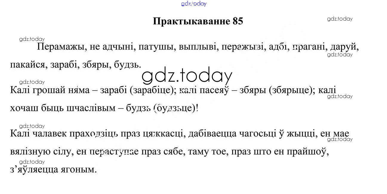 На страницах сайта gdz.today вы найдете учебный и вспомогательный материал, направленный на улучшения знаний школьной программы. ГДЗ - онлайн мир знаний Практыкаванні 85 Учебнику по Белорусскому языку для 7 класса Валочка, Язерская Национальный институт образования 2020