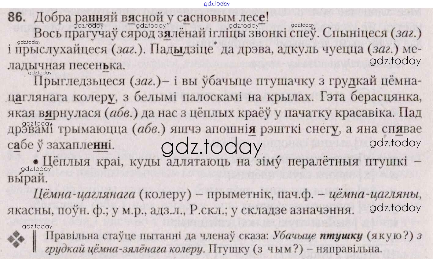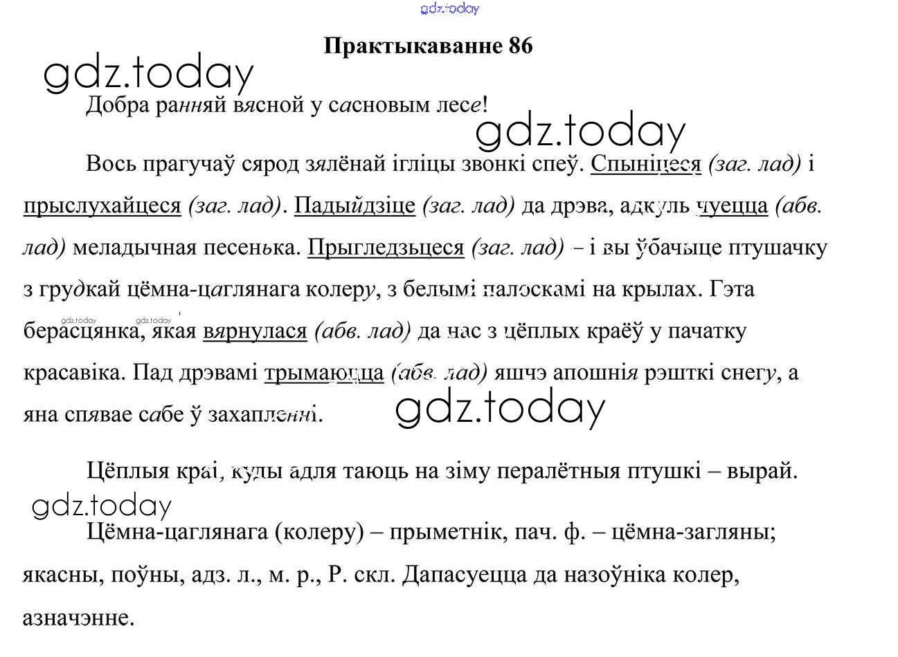 На страницах сайта gdz.today вы найдете учебный и вспомогательный материал, направленный на улучшения знаний школьной программы. ГДЗ - онлайн мир знаний Практыкаванні 86 Учебнику по Белорусскому языку для 7 класса Валочка, Язерская Национальный институт образования 2020