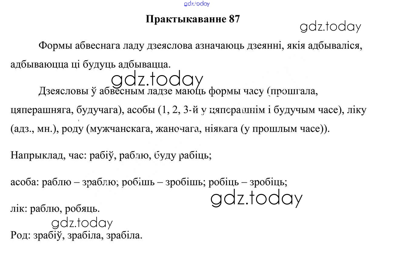 На страницах сайта gdz.today вы найдете учебный и вспомогательный материал, направленный на улучшения знаний школьной программы. ГДЗ - онлайн мир знаний Практыкаванні 87 Учебнику по Белорусскому языку для 7 класса Валочка, Язерская Национальный институт образования 2020