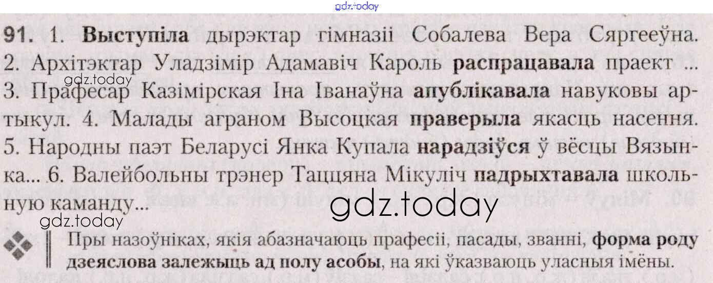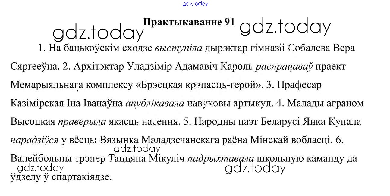 На страницах сайта gdz.today вы найдете учебный и вспомогательный материал, направленный на улучшения знаний школьной программы. ГДЗ - онлайн мир знаний Практыкаванні 91 Учебнику по Белорусскому языку для 7 класса Валочка, Язерская Национальный институт образования 2020