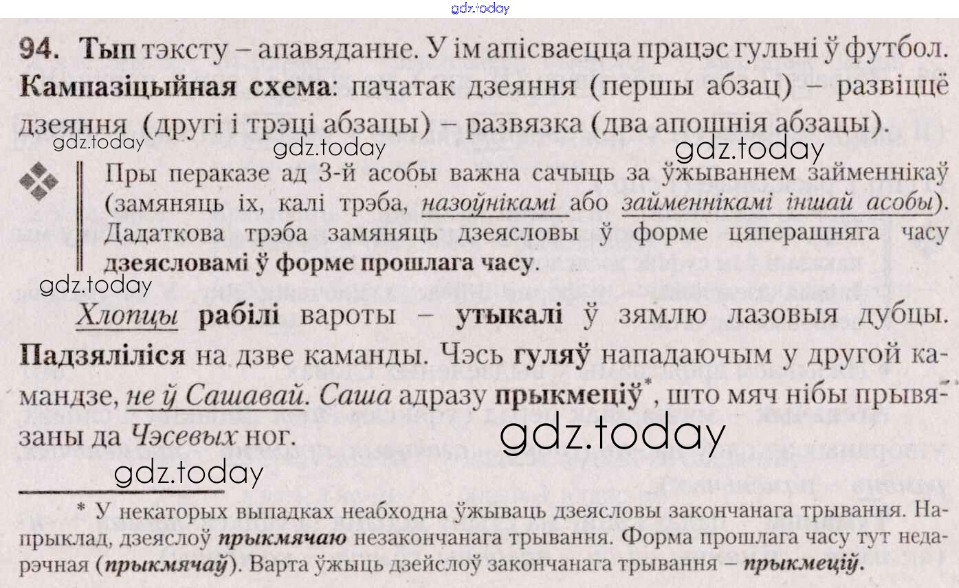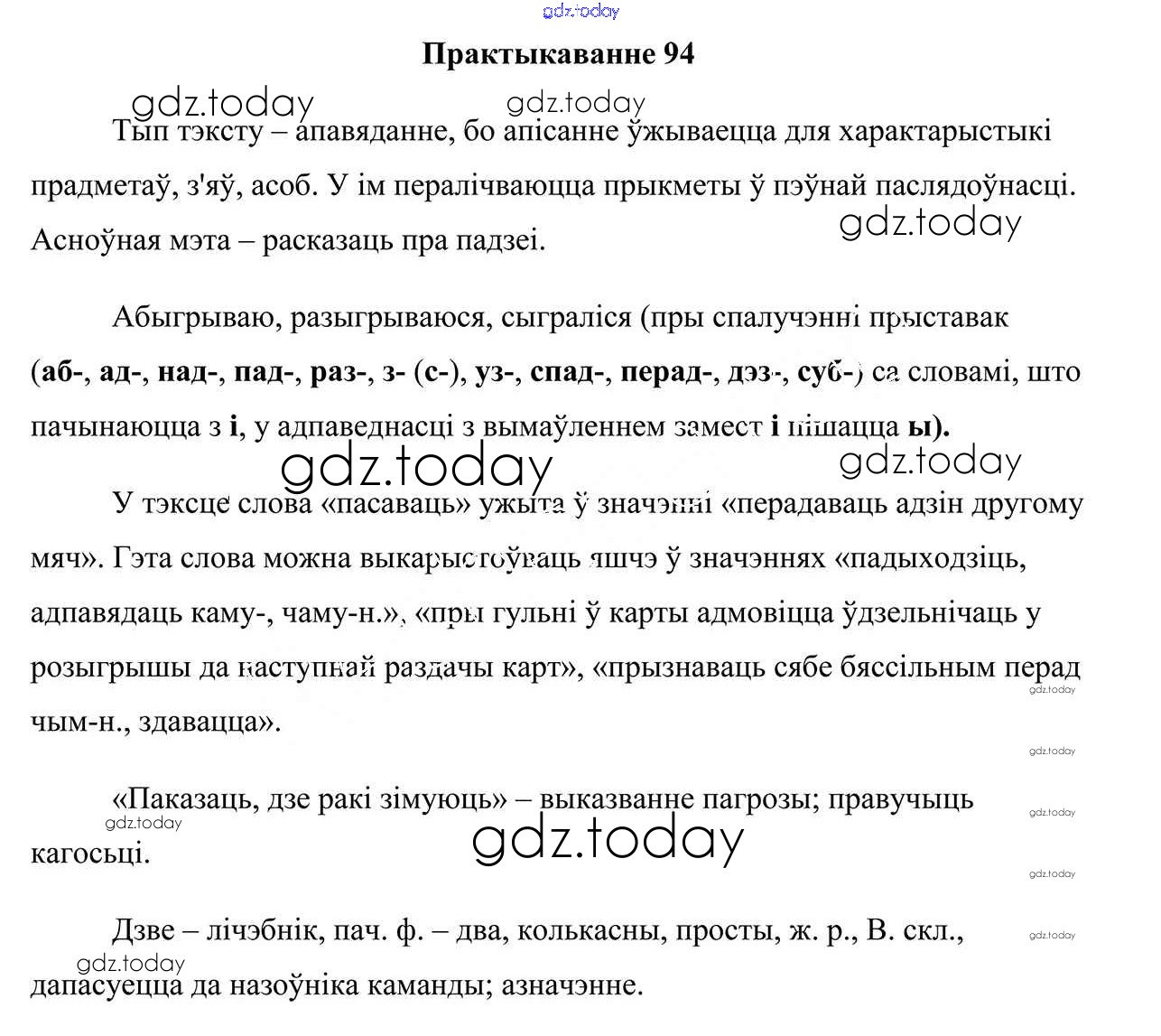На страницах сайта gdz.today вы найдете учебный и вспомогательный материал, направленный на улучшения знаний школьной программы. ГДЗ - онлайн мир знаний Практыкаванні 94 Учебнику по Белорусскому языку для 7 класса Валочка, Язерская Национальный институт образования 2020