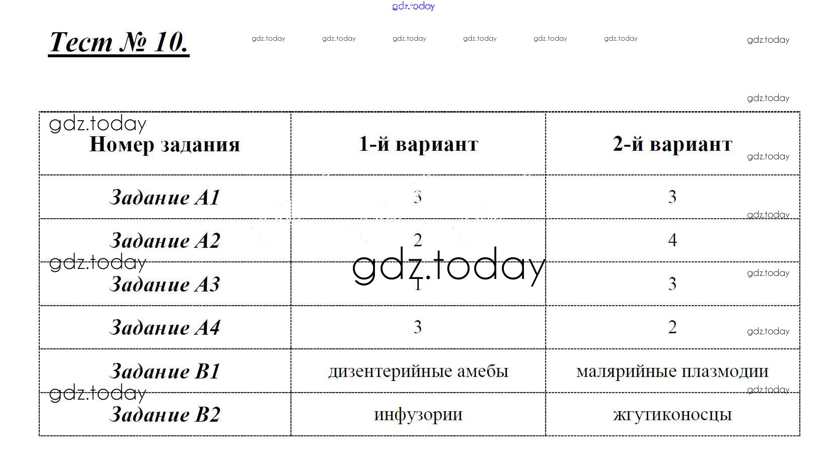 На страницах сайта gdz.today вы найдете учебный и вспомогательный материал, направленный на улучшения знаний школьной программы. ГДЗ - онлайн мир знаний Решение к тестам Тест 10. Подцарство простейшие. Многообразие простейших Контрольно-измерительным материалам (КИМ) по Биологии для 7 класса Артемьева ВАКО 2018