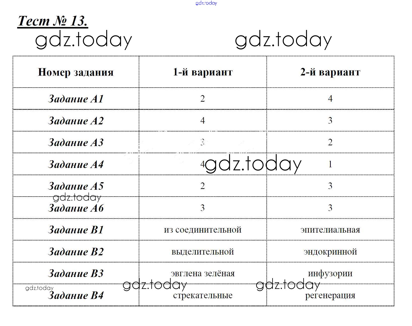 На страницах сайта gdz.today вы найдете учебный и вспомогательный материал, направленный на улучшения знаний школьной программы. ГДЗ - онлайн мир знаний Решение к тестам Тест 13. Итоговый тест за I четверть Контрольно-измерительным материалам (КИМ) по Биологии для 7 класса Артемьева ВАКО 2018