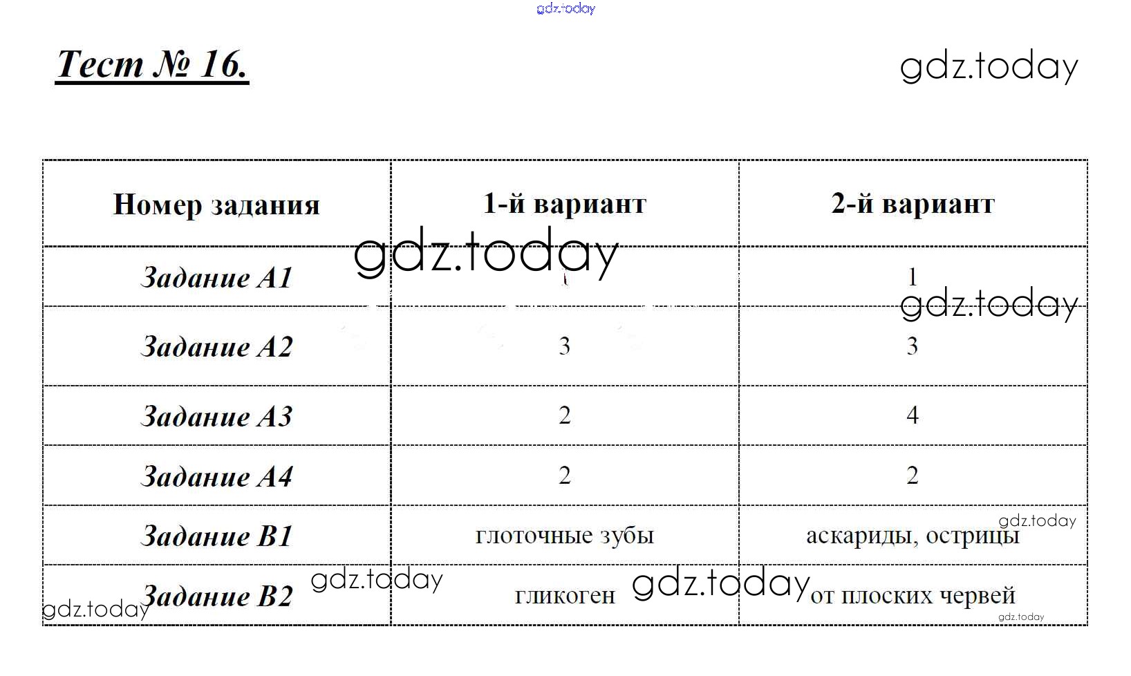 Ответы к Решение к тестам Тест 16. Тип круглые черви Контрольно-измерительным материалам (КИМ) по Биологии для 7 класса Артемьева ВАКО 2018