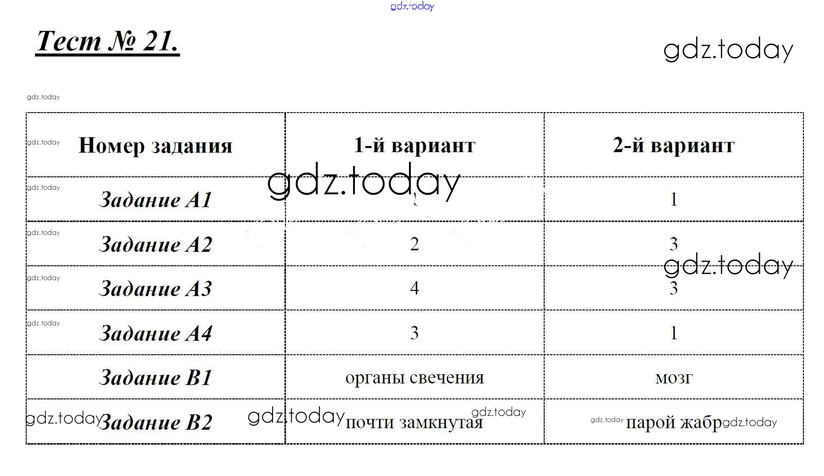 На страницах сайта gdz.today вы найдете учебный и вспомогательный материал, направленный на улучшения знаний школьной программы. ГДЗ - онлайн мир знаний Решение к тестам Тест 21. Тип моллюски. Класс головоногие моллюски Контрольно-измерительным материалам (КИМ) по Биологии для 7 класса Артемьева ВАКО 2018