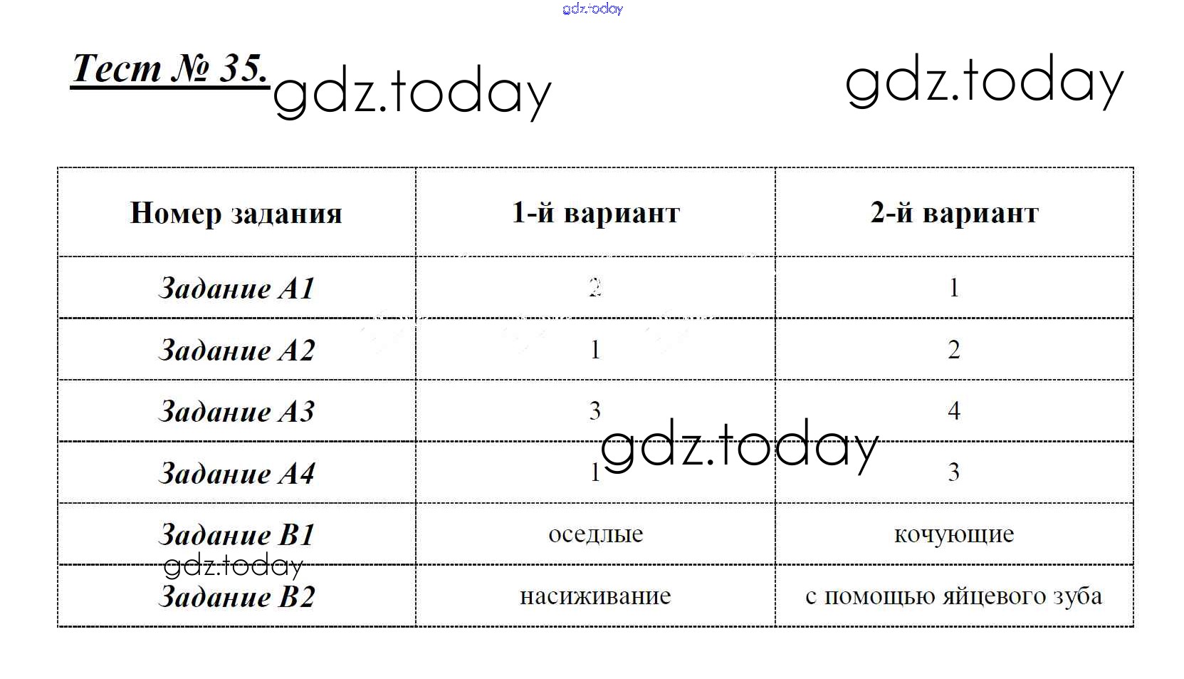 На страницах сайта gdz.today вы найдете учебный и вспомогательный материал, направленный на улучшения знаний школьной программы. ГДЗ - онлайн мир знаний Решение к тестам Тест 35. Класс птицы. Размножение и развитие Контрольно-измерительным материалам (КИМ) по Биологии для 7 класса Артемьева ВАКО 2018