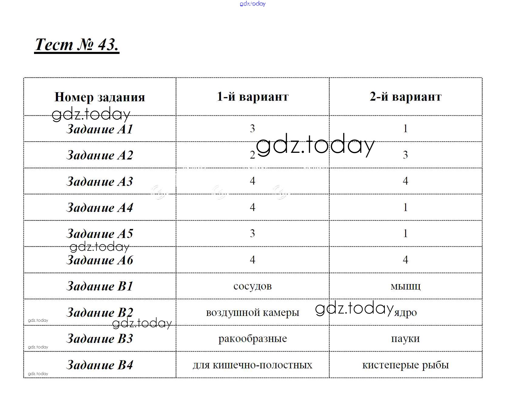На страницах сайта gdz.today вы найдете учебный и вспомогательный материал, направленный на улучшения знаний школьной программы. ГДЗ - онлайн мир знаний Решение к тестам Тест 43. Итоговый тест за 7 класс Контрольно-измерительным материалам (КИМ) по Биологии для 7 класса Артемьева ВАКО 2018