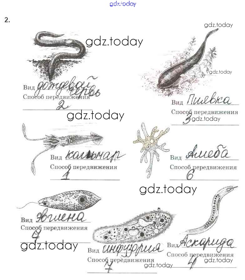 На страницах сайта gdz.today вы найдете учебный и вспомогательный материал, направленный на улучшения знаний школьной программы. ГДЗ - онлайн мир знаний Страницы (решение) 102 Рабочей тетради по Биологии для 7 класса Латюшин, Ламехова Дрофа УМК 2019