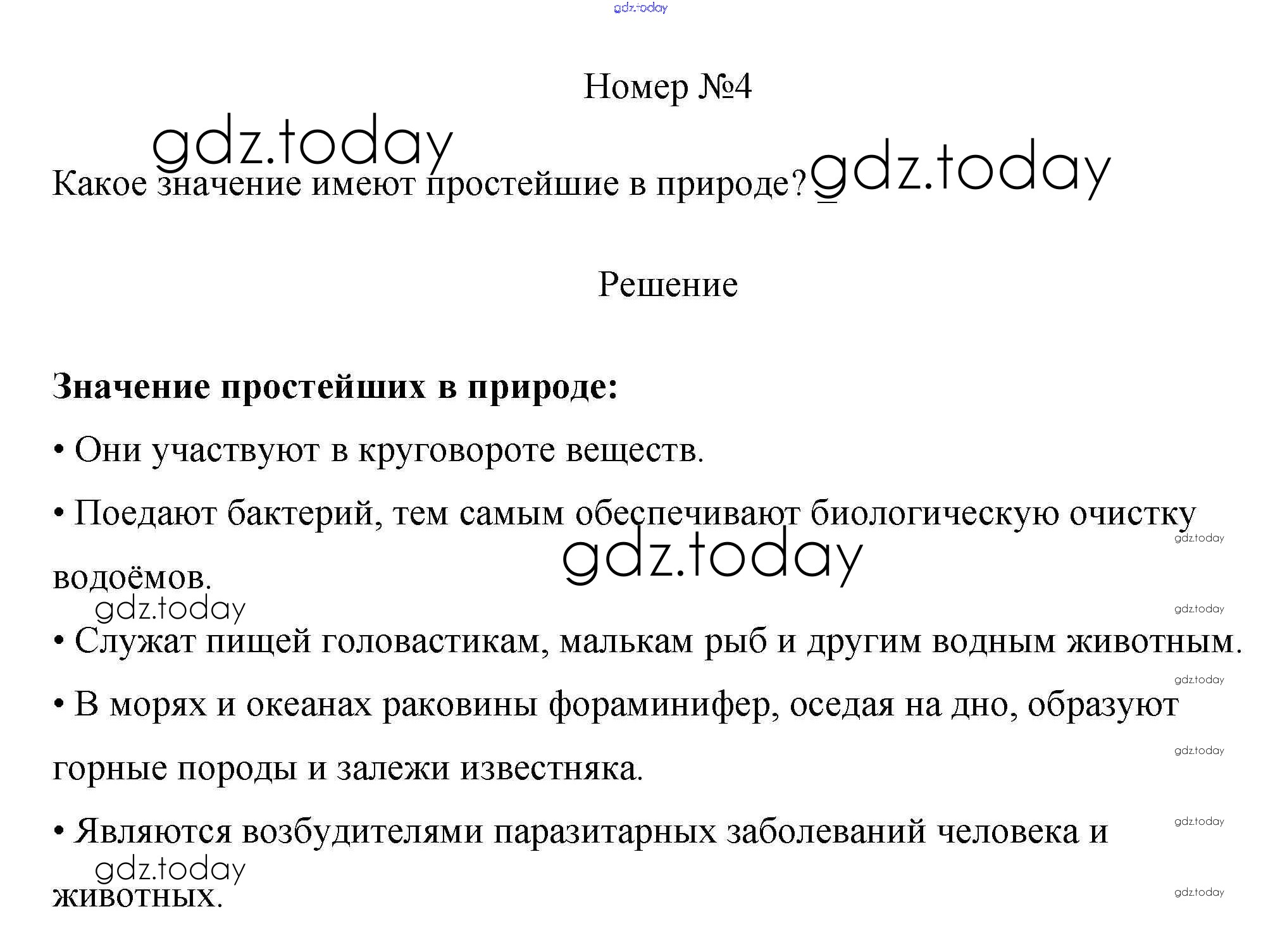 Ответы к §5. Паразитические простейшие. Значение простейших Тетрадь 2020 (решение) 4 Рабочей тетради по Биологии для 7 класса Пасечник Просвещение Линия жизни 2016