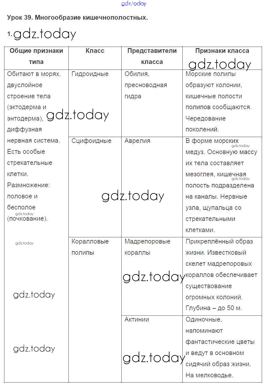 На страницах сайта gdz.today вы найдете учебный и вспомогательный материал, направленный на улучшения знаний школьной программы. ГДЗ - онлайн мир знаний §39. Многообразие кишечнополостных Тетрадь 2016 (решение) 1 Рабочей тетради по Биологии для 7 класса Пасечник Просвещение Линия жизни 2016