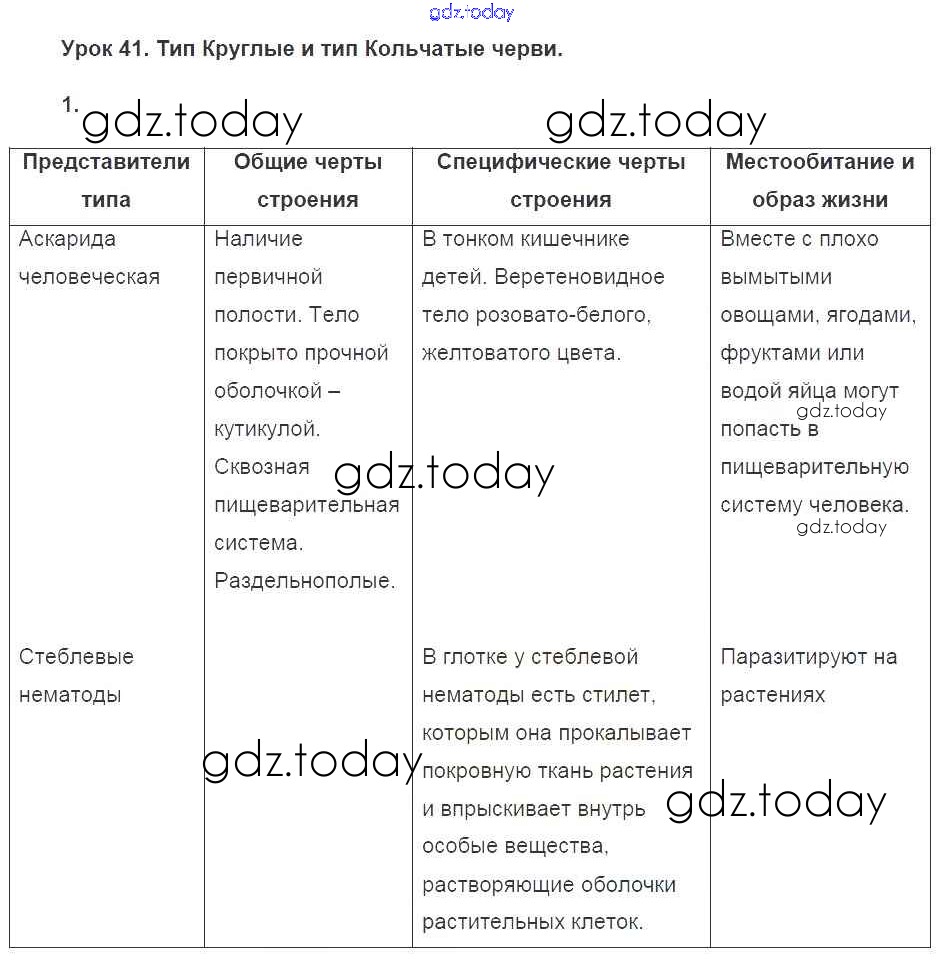 На страницах сайта gdz.today вы найдете учебный и вспомогательный материал, направленный на улучшения знаний школьной программы. ГДЗ - онлайн мир знаний §41. Тип Круглые и тип Кольчатые черви Тетрадь 2016 (решение) 1 Рабочей тетради по Биологии для 7 класса Пасечник Просвещение Линия жизни 2016
