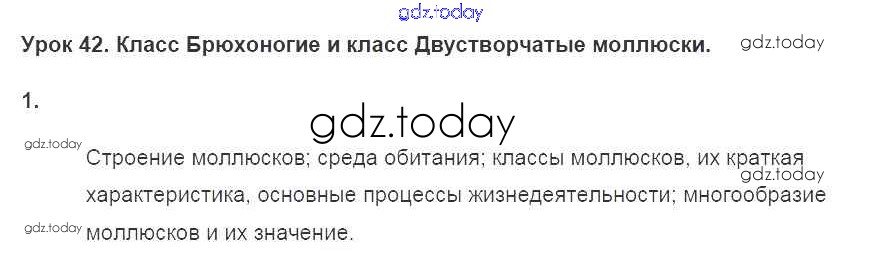 Ответы к §42. Класс Брюхоногие и класс Двустворчатые моллюски Тетрадь 2016 (решение) 1 Рабочей тетради по Биологии для 7 класса Пасечник Просвещение Линия жизни 2016