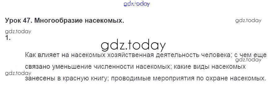 Ответы к §47. Многообразие насекомых Тетрадь 2016 (решение) 1 Рабочей тетради по Биологии для 7 класса Пасечник Просвещение Линия жизни 2016