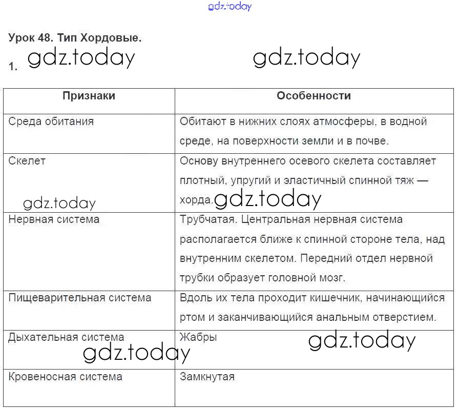 На страницах сайта gdz.today вы найдете учебный и вспомогательный материал, направленный на улучшения знаний школьной программы. ГДЗ - онлайн мир знаний §48. Тип Хордовые Тетрадь 2016 (решение) 1 Рабочей тетради по Биологии для 7 класса Пасечник Просвещение Линия жизни 2016