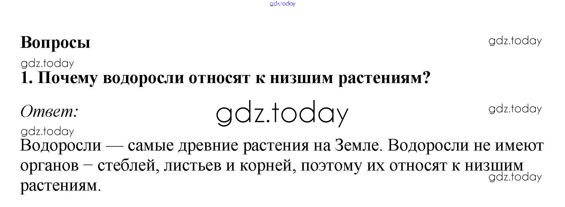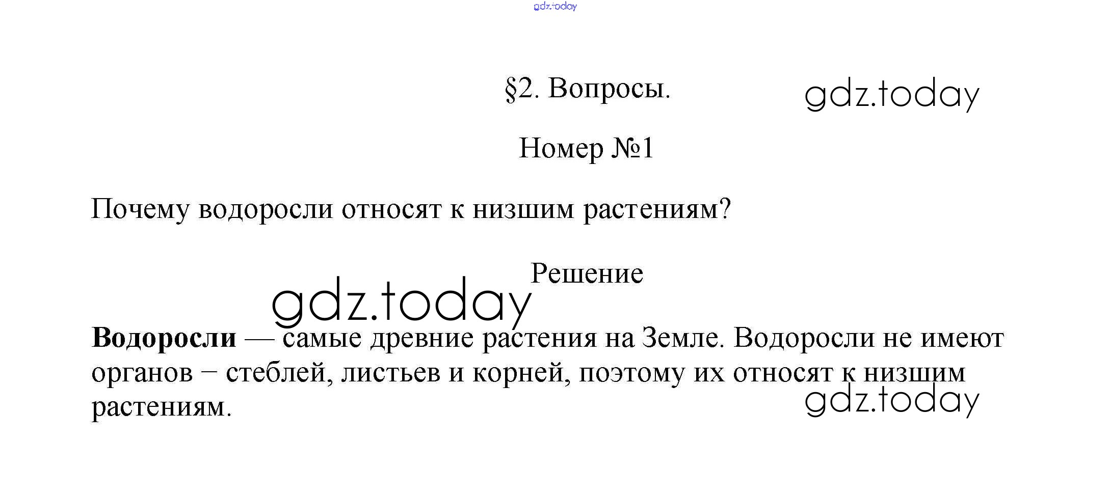 На страницах сайта gdz.today вы найдете учебный и вспомогательный материал, направленный на улучшения знаний школьной программы. ГДЗ - онлайн мир знаний Вопросы Решение к §2. Группа отделов Водоросли 1 Учебнику по Биологии для 7 класса Пасечник Линейный курс Дрофа 2020