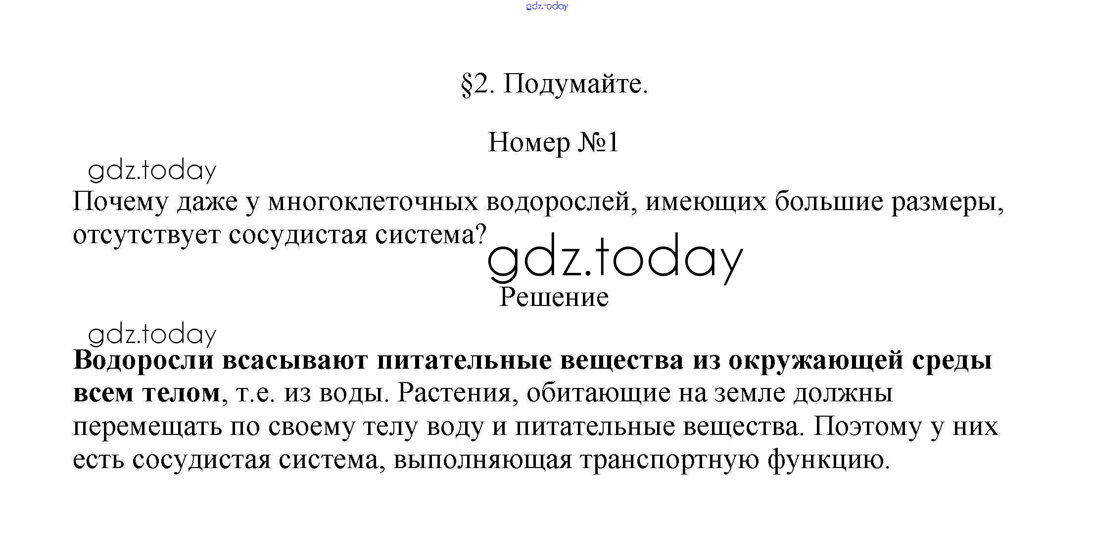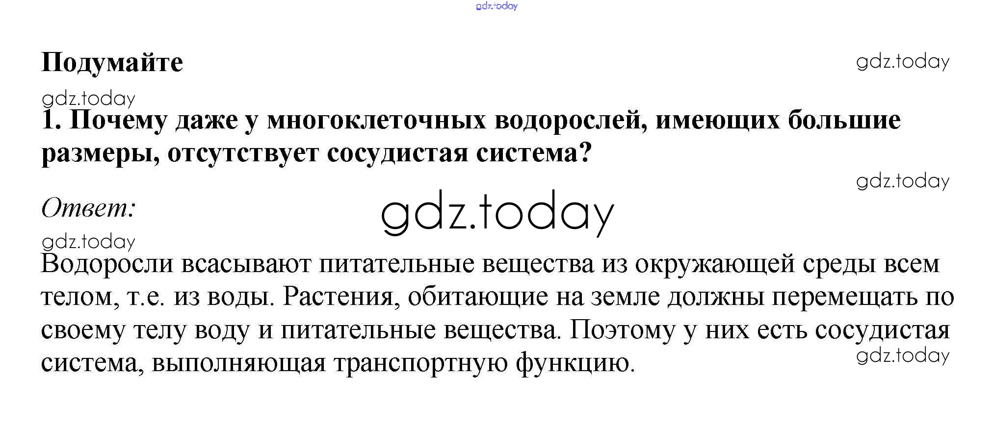 На страницах сайта gdz.today вы найдете учебный и вспомогательный материал, направленный на улучшения знаний школьной программы. ГДЗ - онлайн мир знаний Подумайте Решение к §2. Группа отделов Водоросли 1 Учебнику по Биологии для 7 класса Пасечник Линейный курс Дрофа 2020