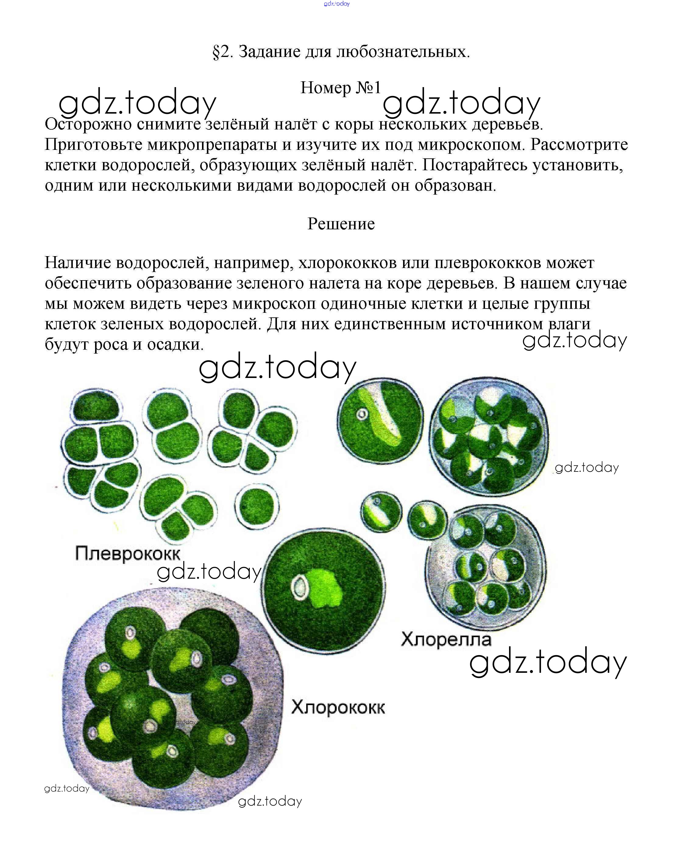 На страницах сайта gdz.today вы найдете учебный и вспомогательный материал, направленный на улучшения знаний школьной программы. ГДЗ - онлайн мир знаний Задание для любознательных Решение к §2. Группа отделов Водоросли 1 Учебнику по Биологии для 7 класса Пасечник Линейный курс Дрофа 2020