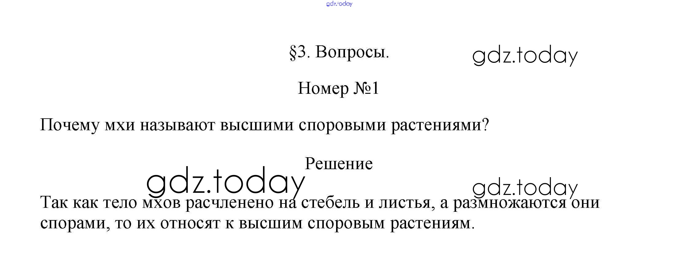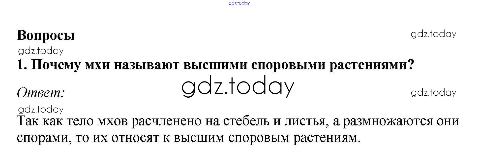 На страницах сайта gdz.today вы найдете учебный и вспомогательный материал, направленный на улучшения знаний школьной программы. ГДЗ - онлайн мир знаний Вопросы Решение к §3. Отдел моховидные 1 Учебнику по Биологии для 7 класса Пасечник Линейный курс Дрофа 2020