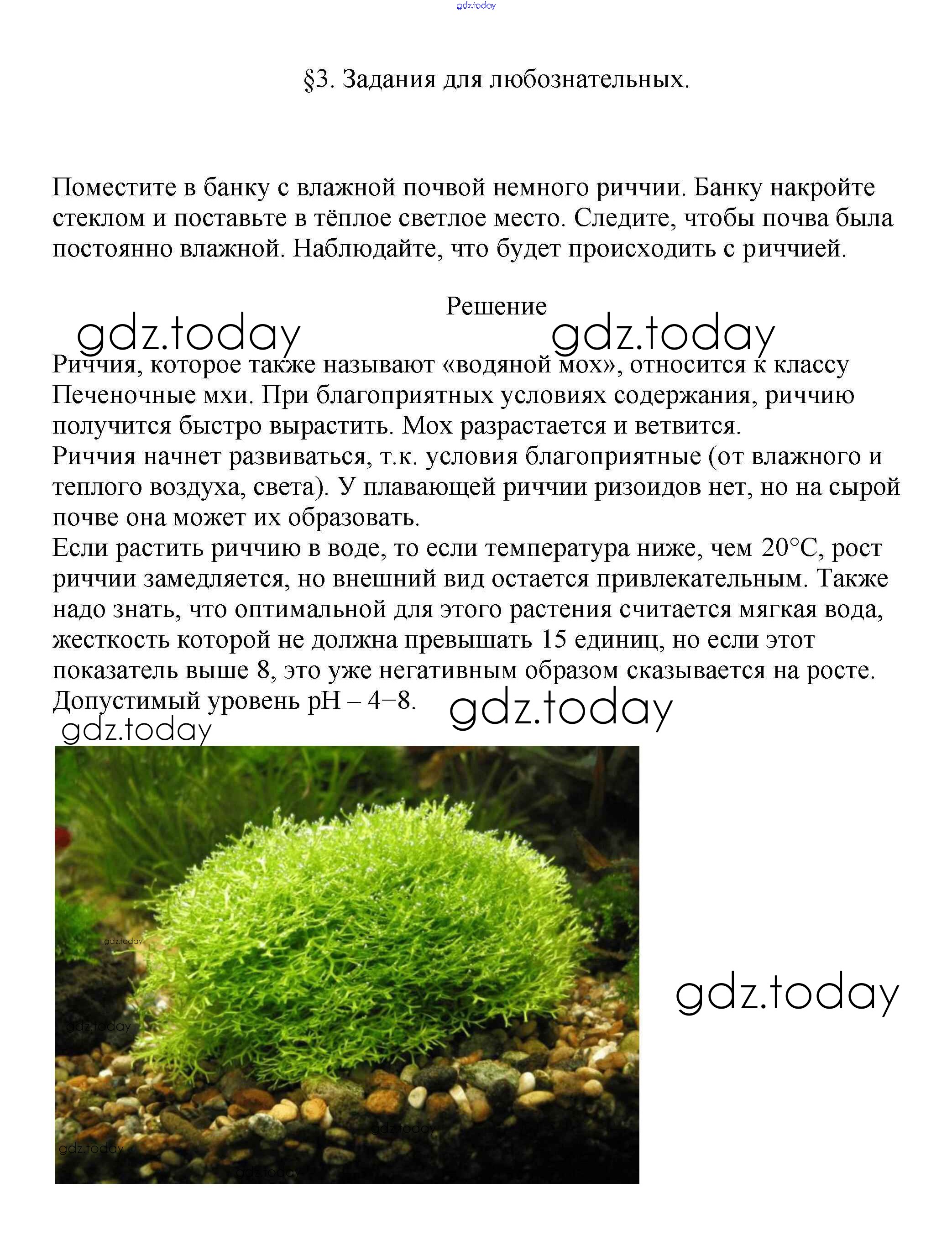 Ответы к Задания для любознательных Решение к §3. Отдел моховидные 2 Учебнику по Биологии для 7 класса Пасечник Линейный курс Дрофа 2020